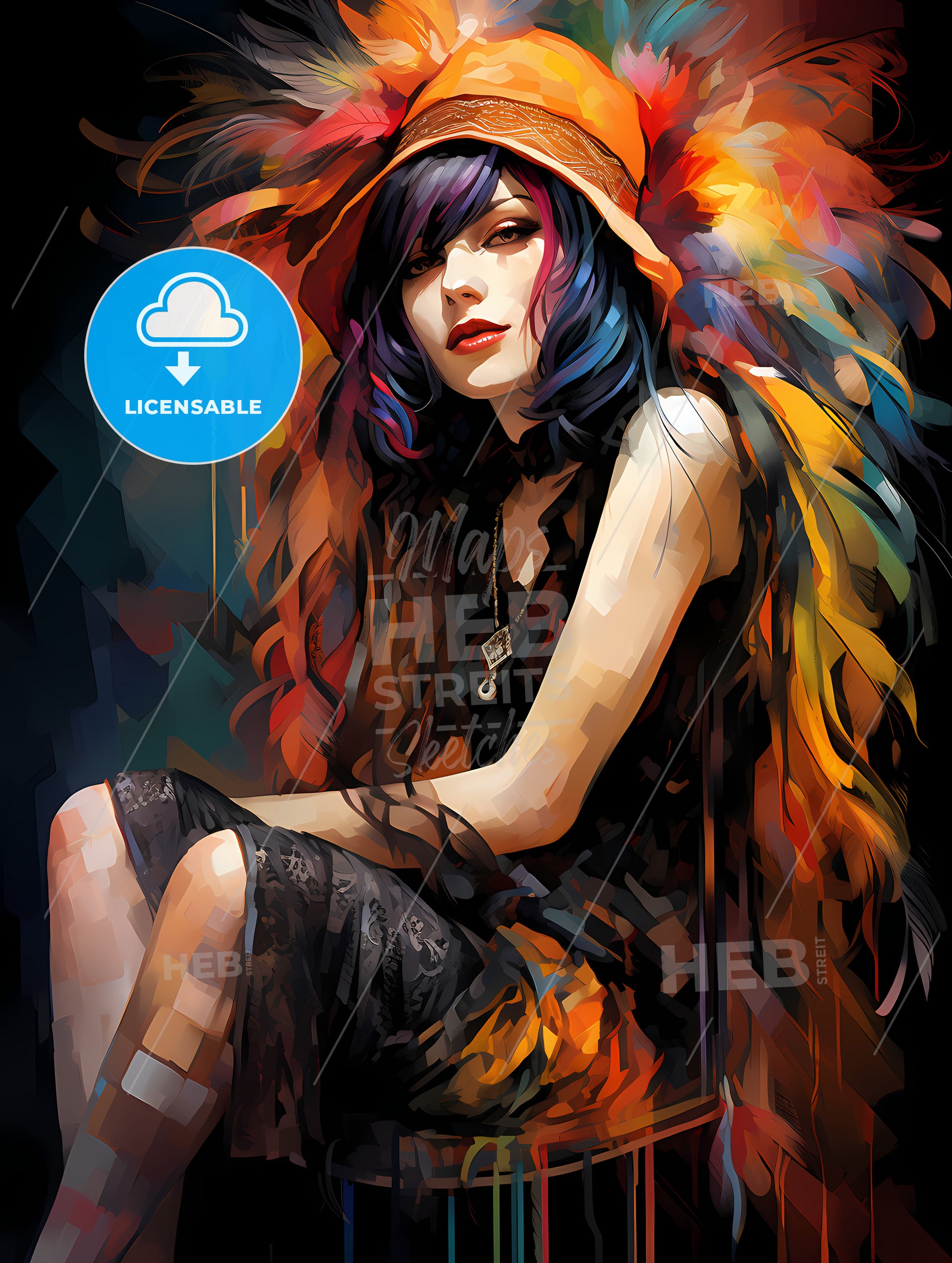 1920 S Flapper With Fishnet Stockings And Cigaratte - a woman with colorful hair and a hat