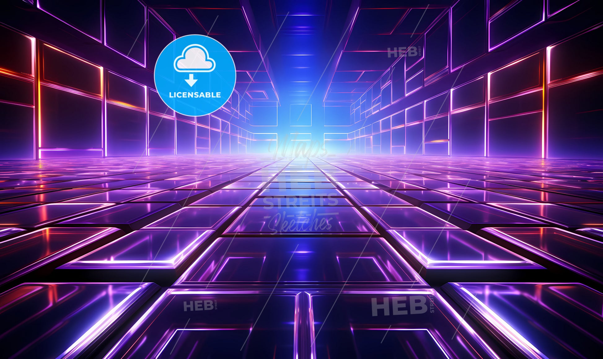 A Purple And Blue Lights On A Dark Room, glowing neon lines Virtual reality space.