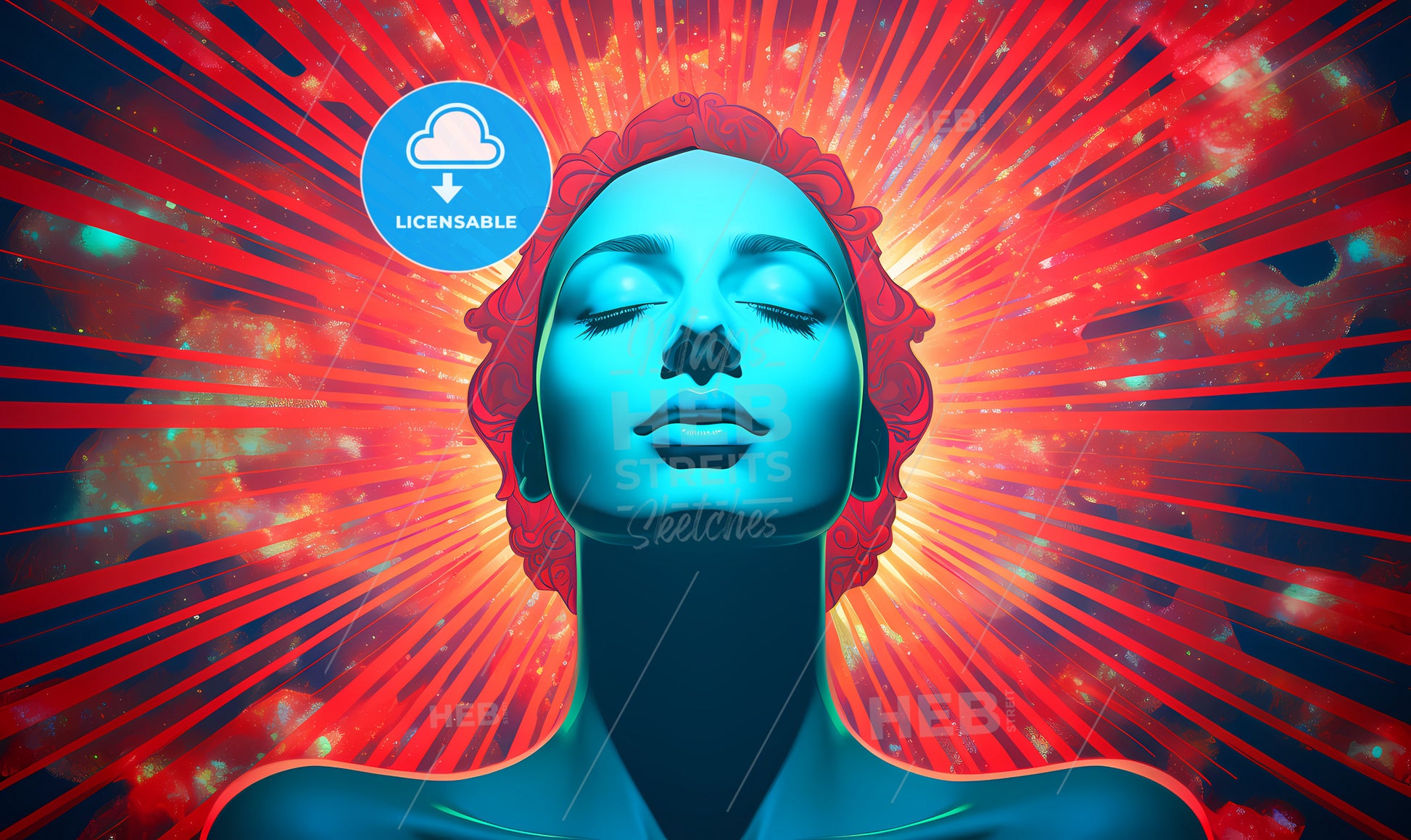 A Woman With Her Eyes Closed, neo-pop iconography anaglyph effect retro-poster art.