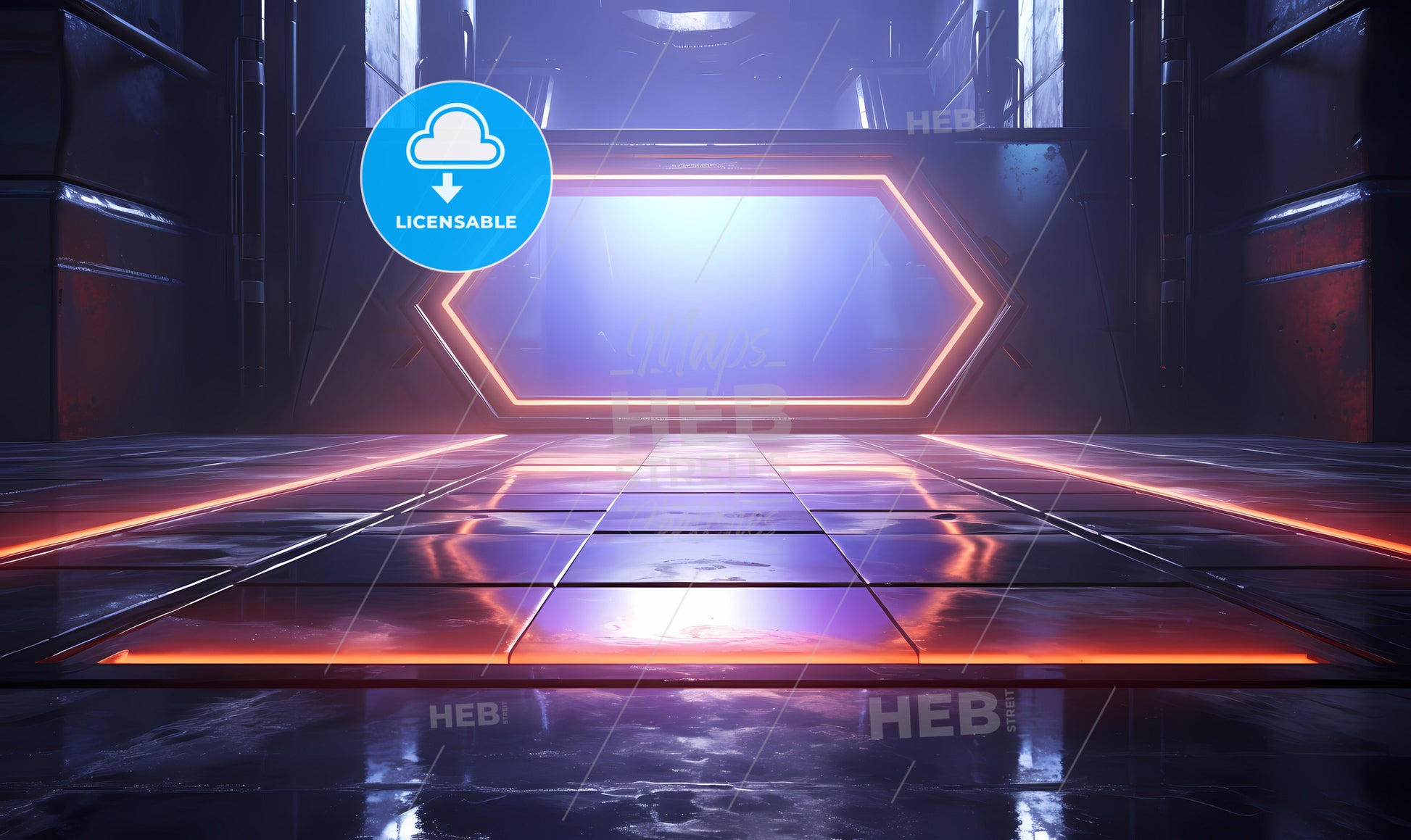 A Room With A Hexagon Shaped Light, Abstract Futuristic Sci Fi Concrete Room.