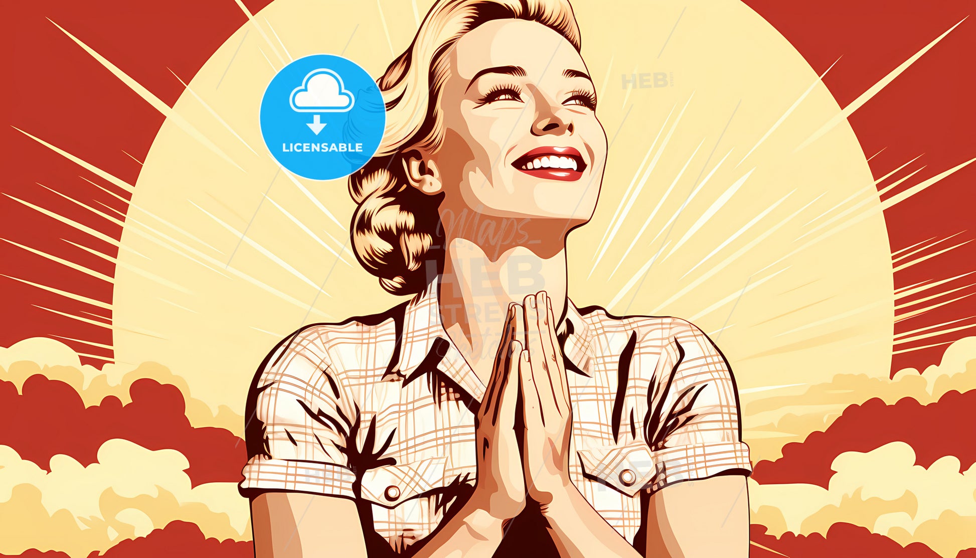 A Woman With Her Hands Together In Front Of Her Face, Young blonde woman volunteer smiling.