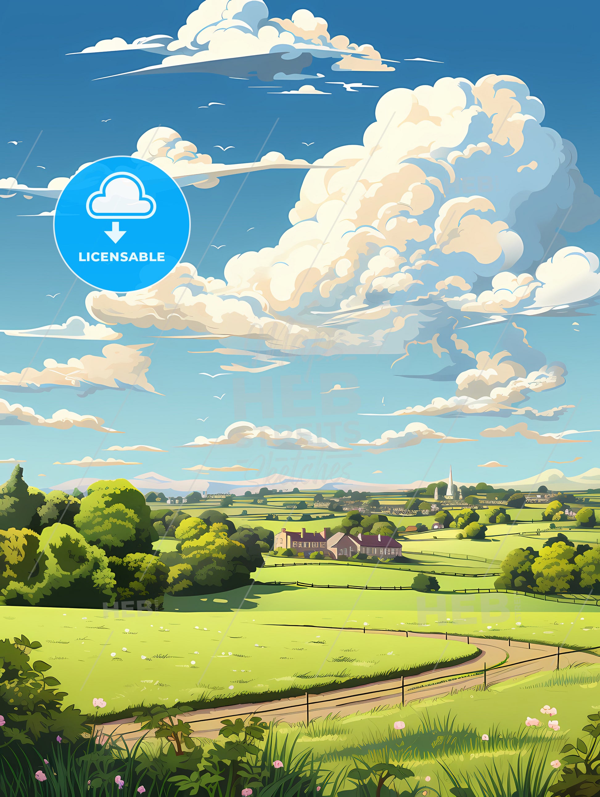 Milton Keynes England Skyline, a landscape with a road and trees.