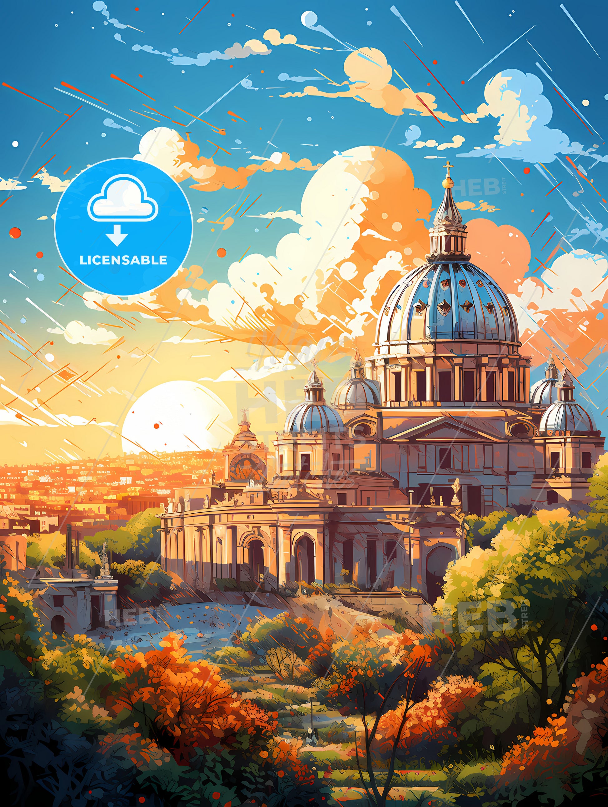 Rome Italy Skyline, a building with a dome and trees in front of it.