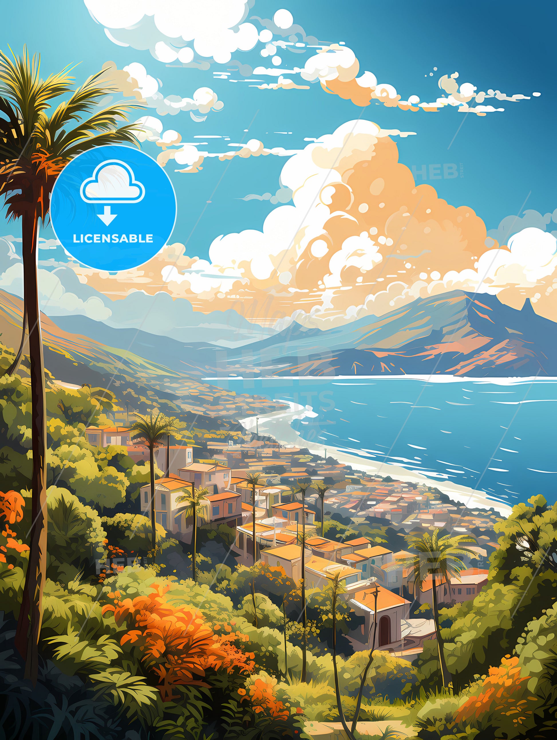 La Gomera Spain Skyline, a landscape of a town by the water.
