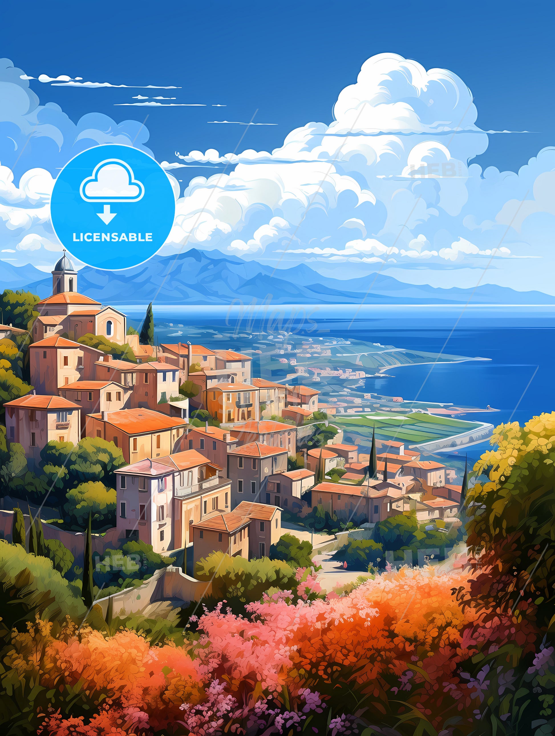 Giugliano In Campania Italy Skyline, a landscape of a town by the water.
