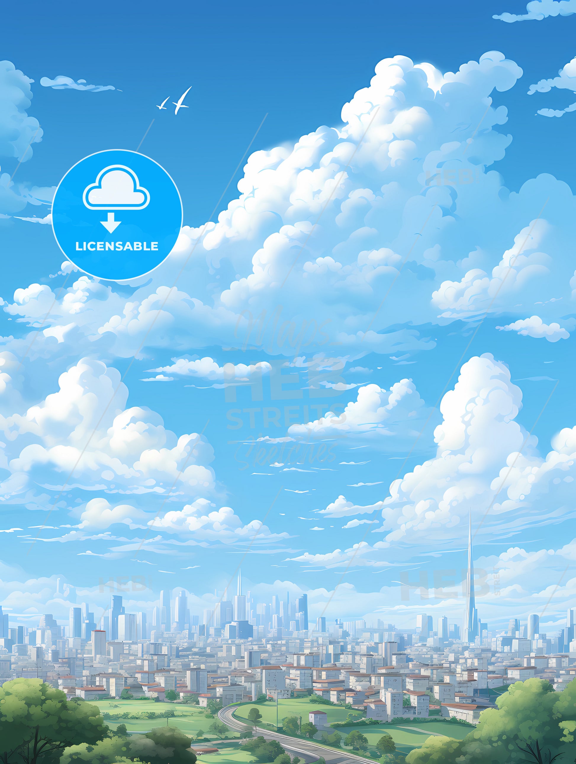 Incheon South Korea Skyline, a blue sky with clouds and a city.