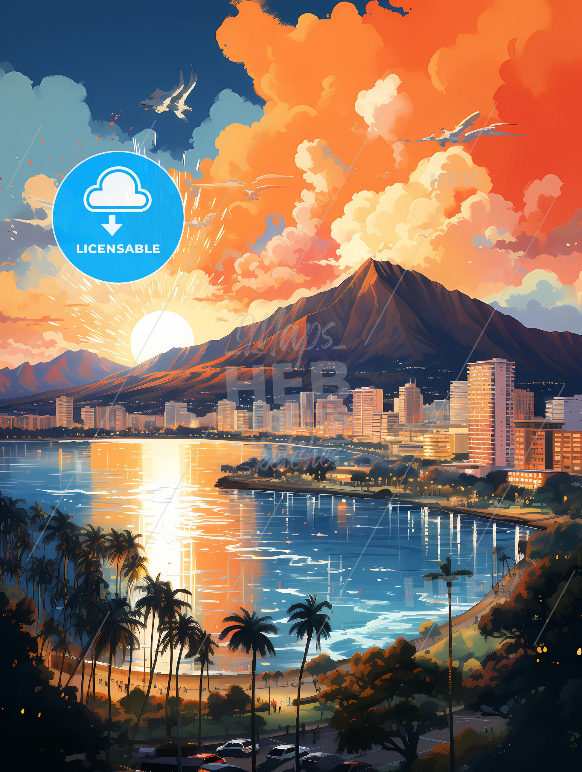 Honolulu Hawaii Skyline, a city next to a body of water.