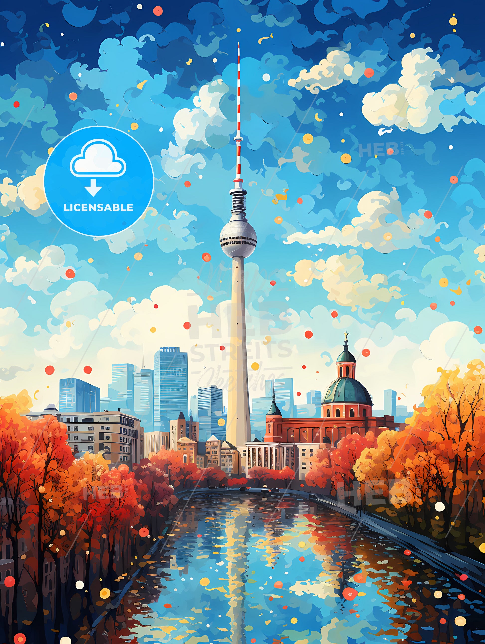 Berlin Germany Skyline, a city with a river and a tower.