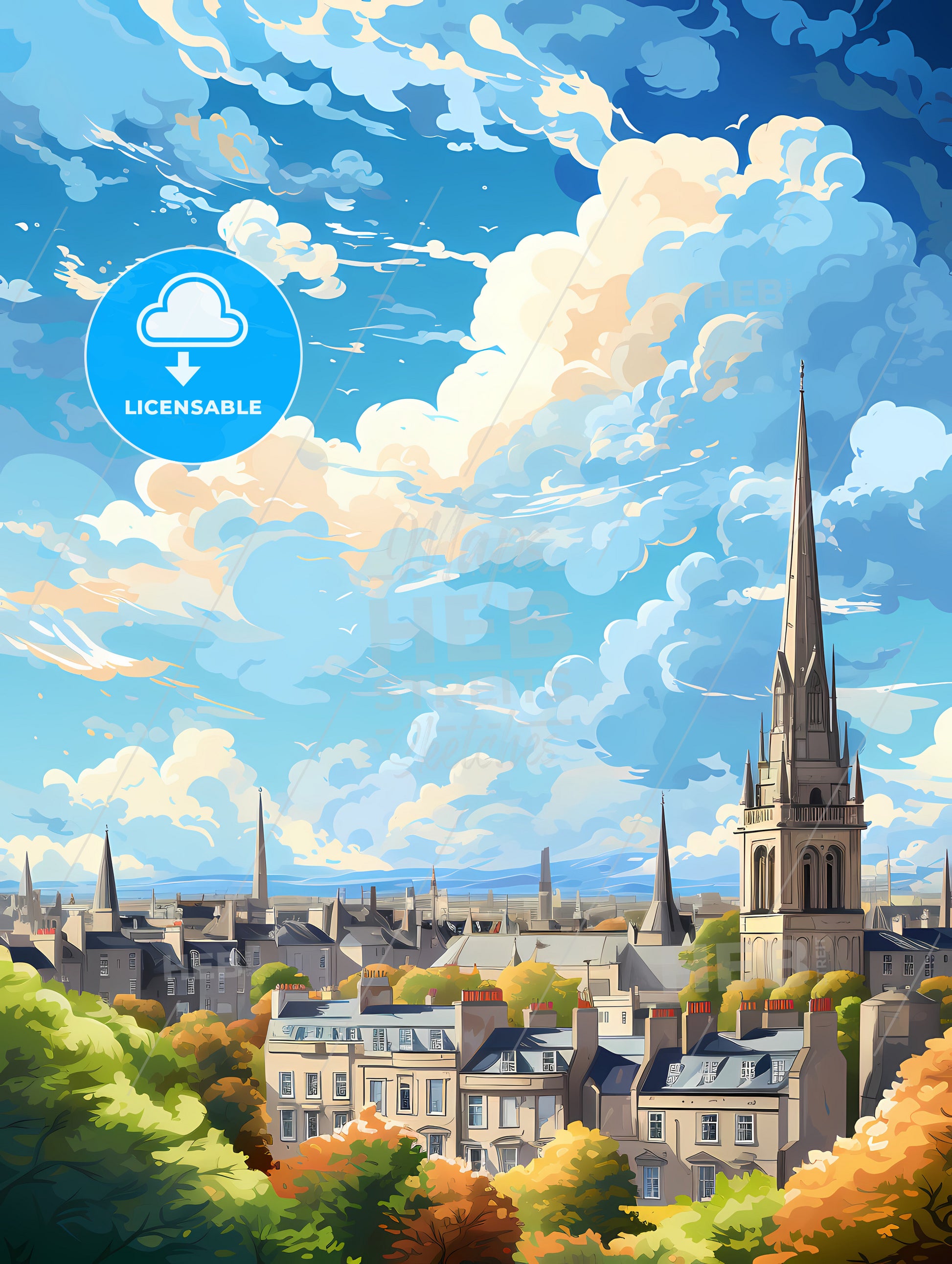 A City With A Tall Spire And A Tower