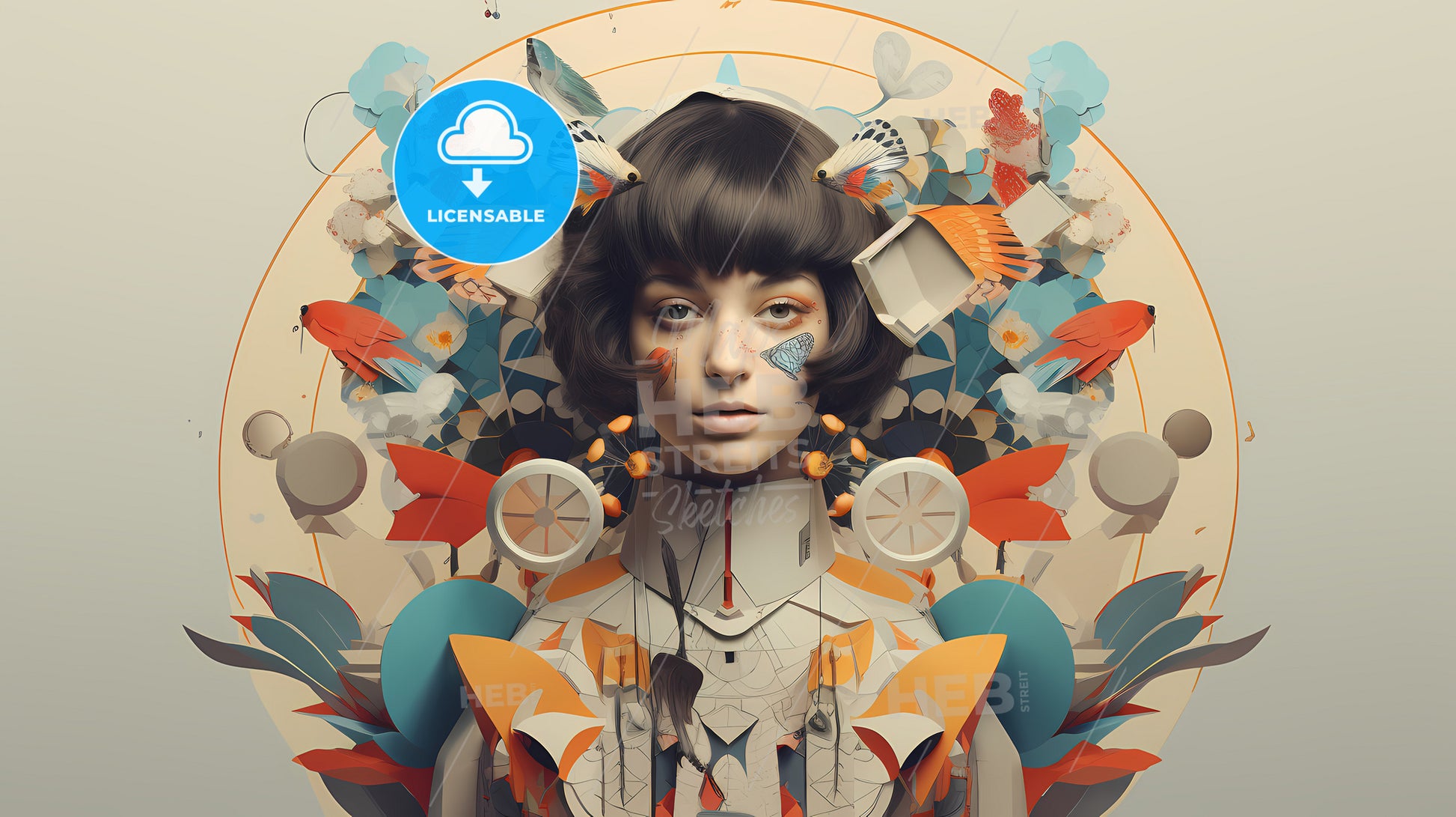 A Woman With A Colorful Design Around Her Head