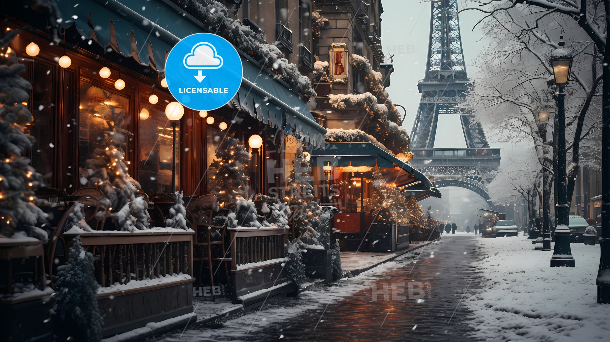 A Beautiful Representation Of Winter In Paris, a street with a tower in the background.