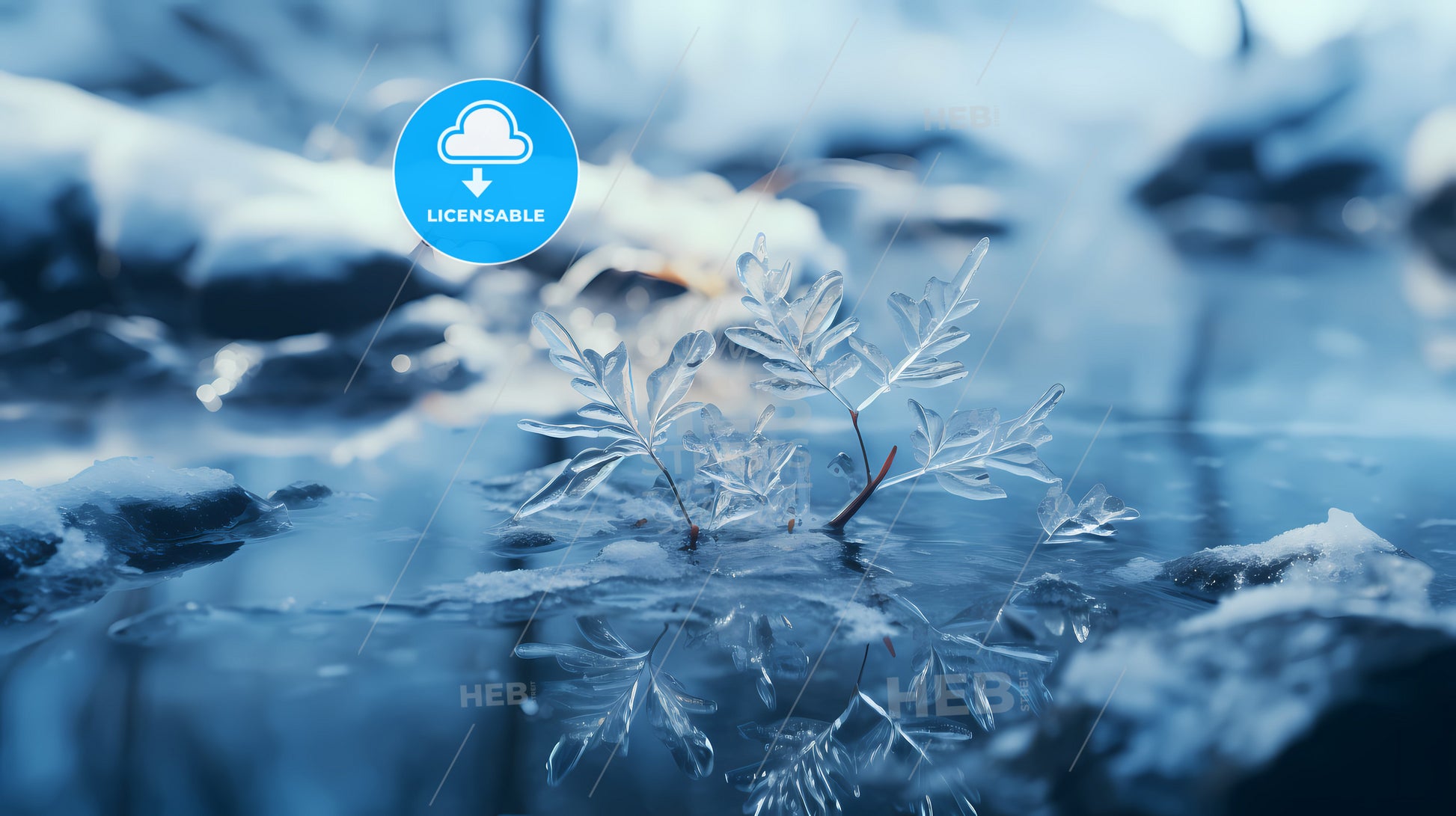 Beautiful Winter Nature Ice, a plant in ice with snow and ice on the ground.