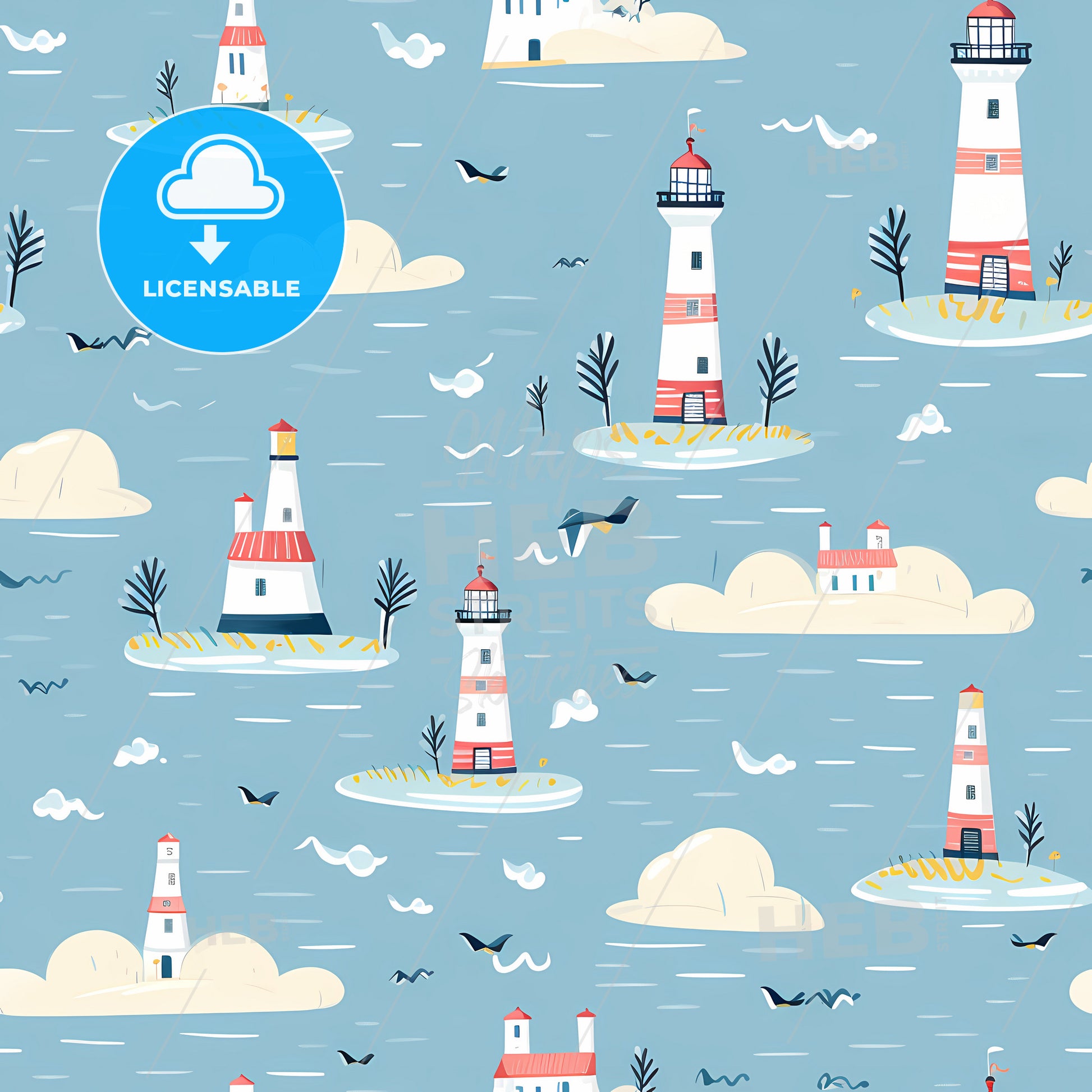 Light House Sketch Flat Illustration, a pattern of lighthouses and clouds.