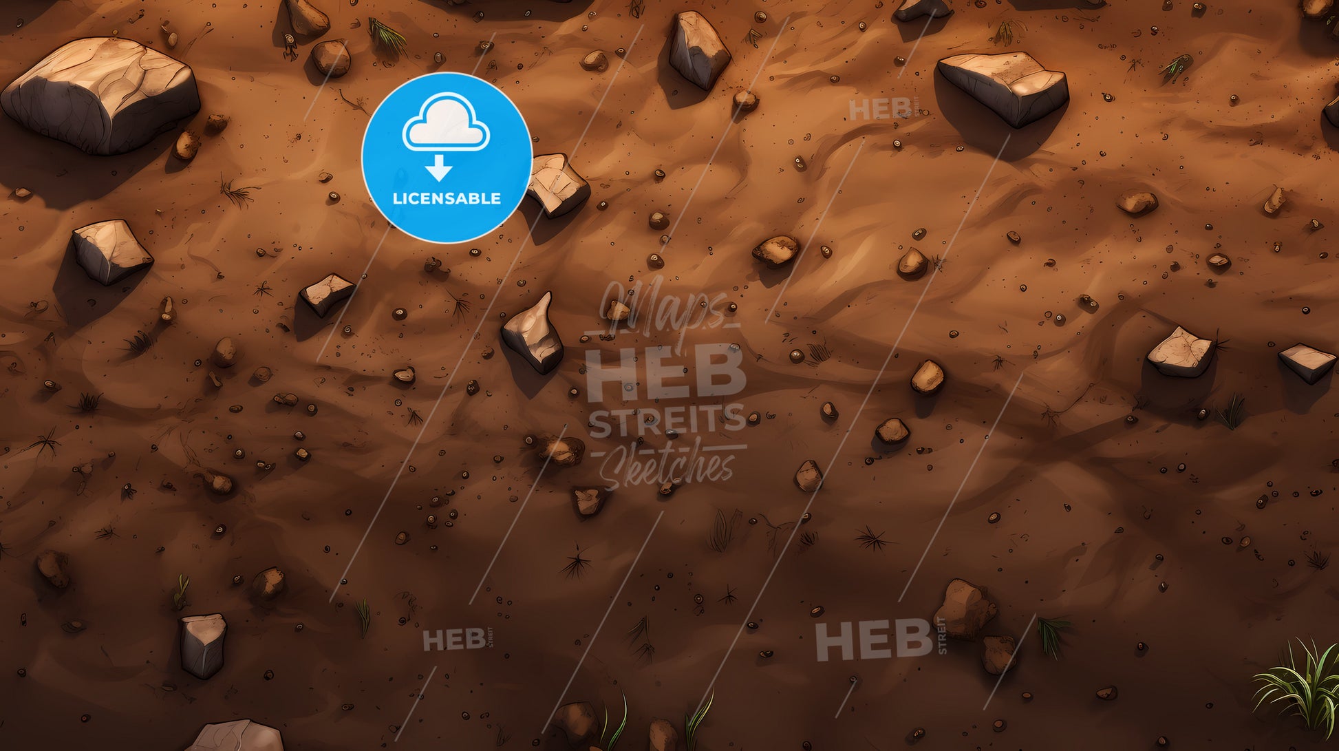 Seamless Game Texture Of Freshly Tilled Soil, a group of rocks in the dirt.
