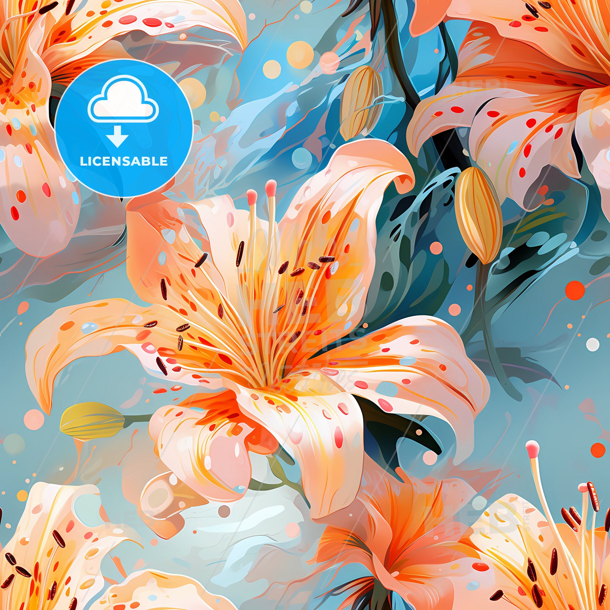 Seamless Abstract Floral Art Pattern Lilies, a close up of flowers.