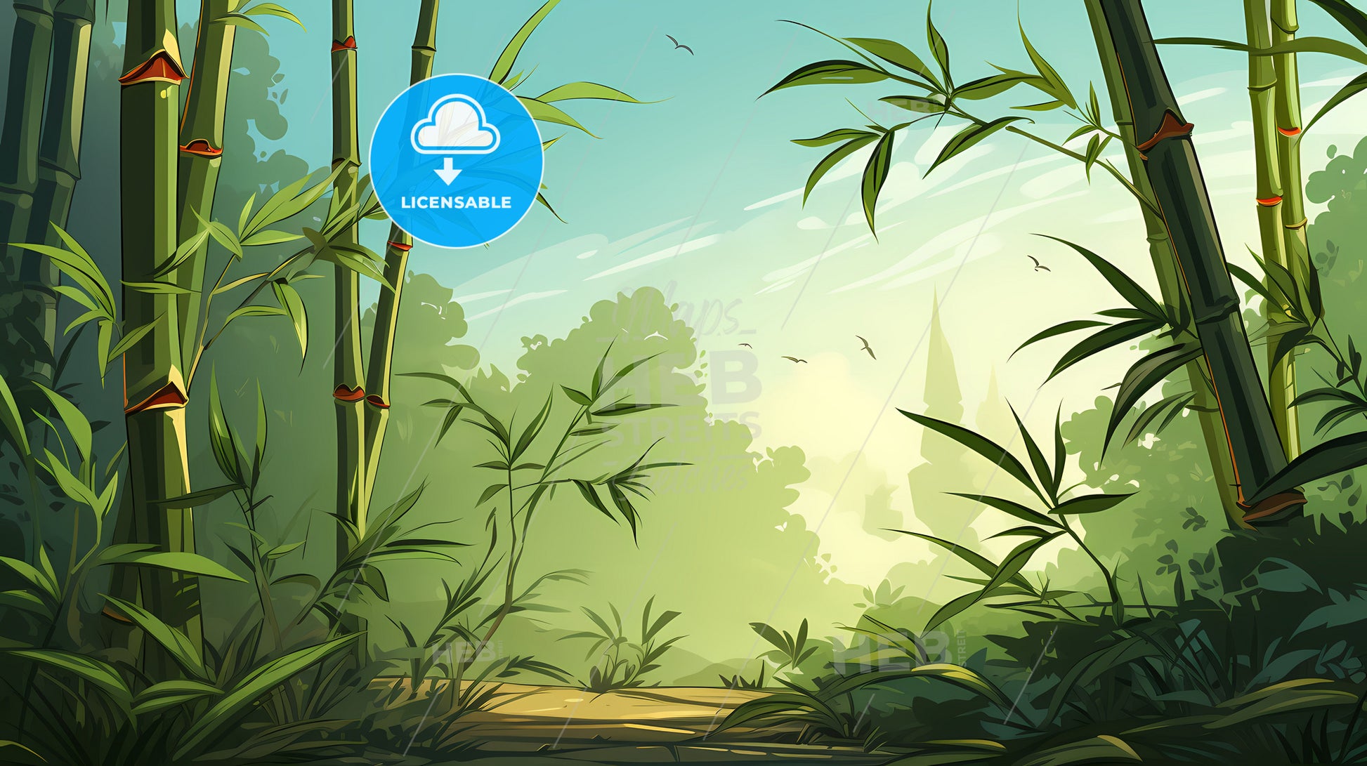 Few Bamboo Illustration Style Cartoon, a cartoon of a bamboo forest.