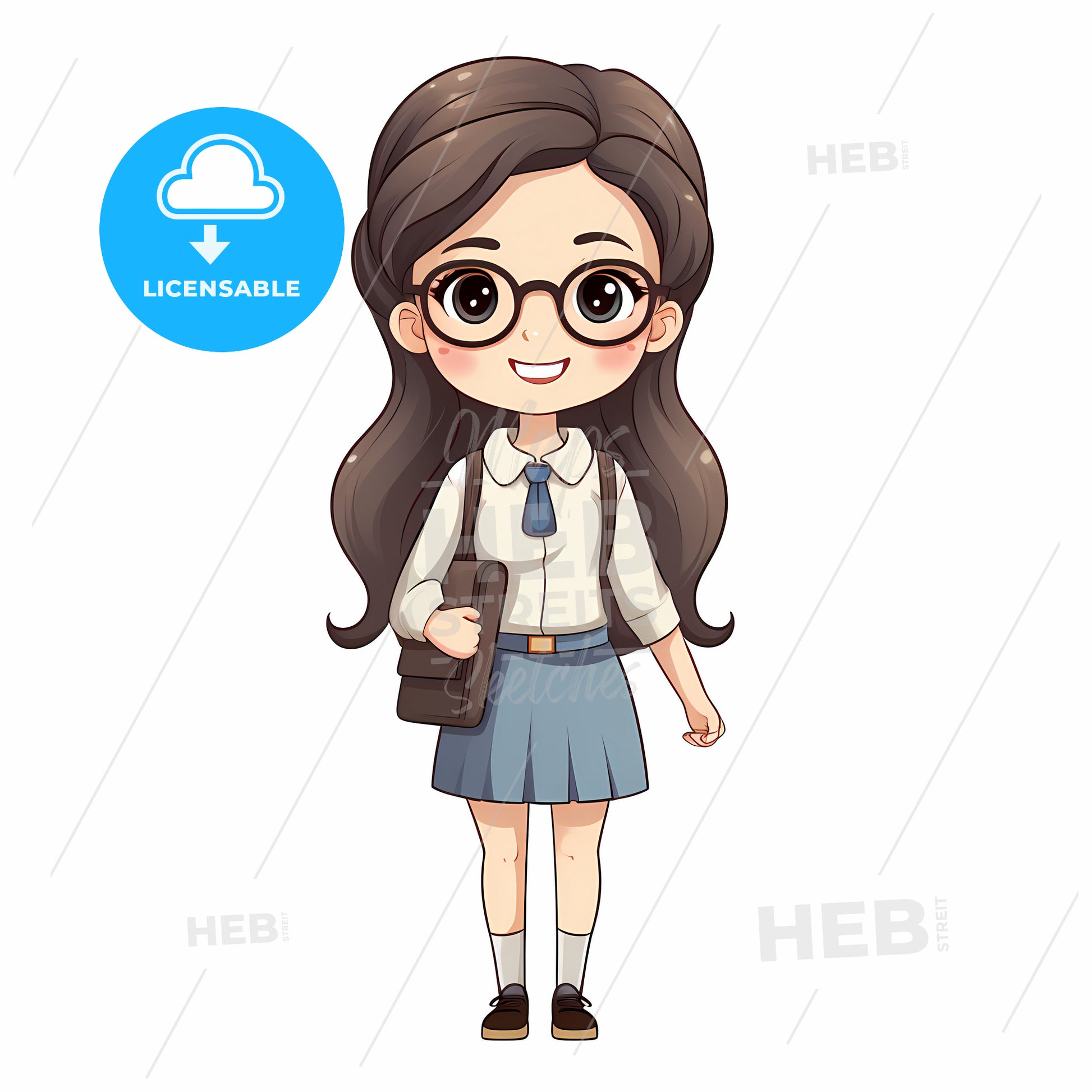 A Young Happy Bubbly Female Teacher, a cartoon of a girl wearing glasses.