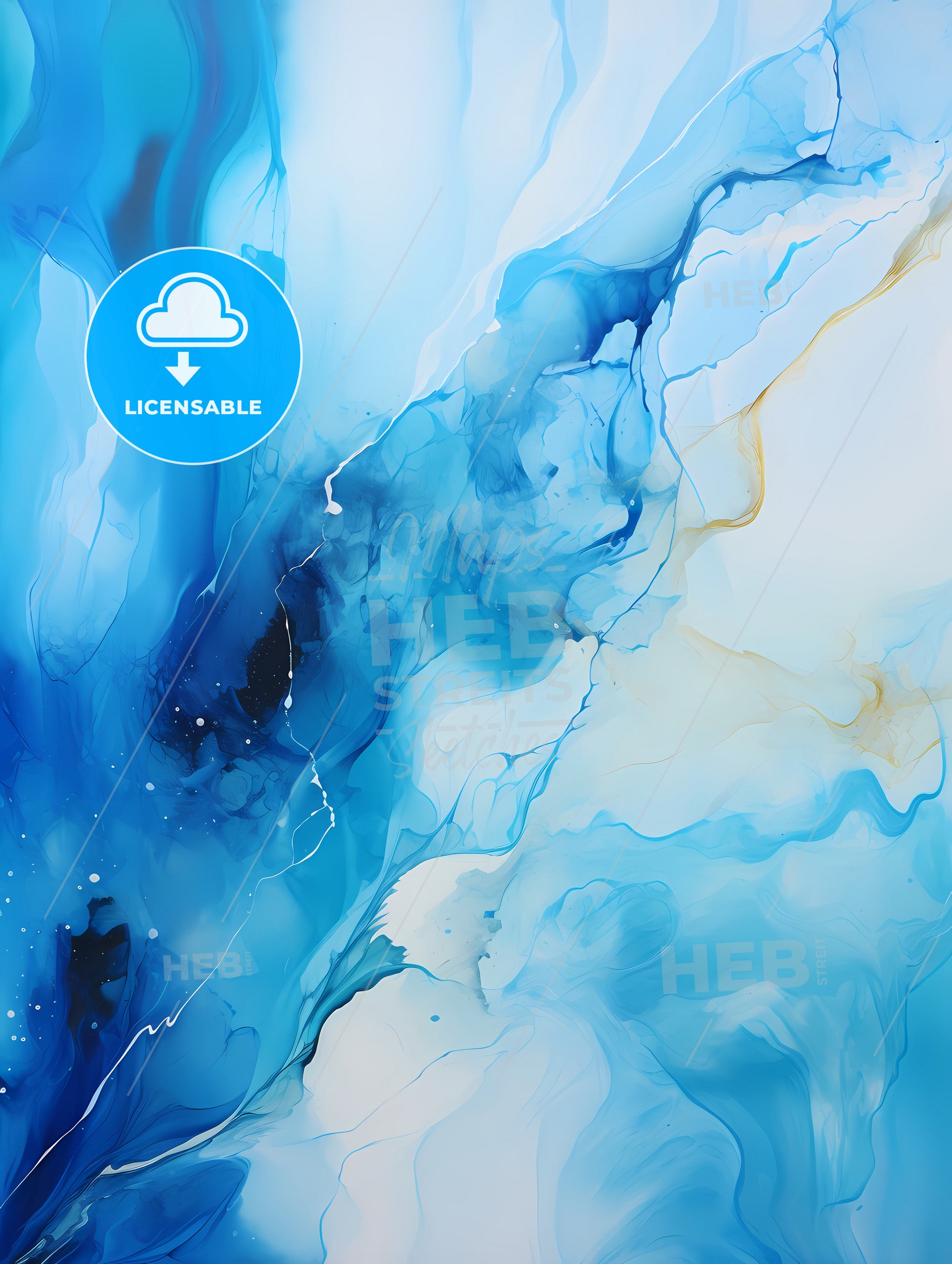 Abstract Blue Acrylic Painting On Canvas, a blue and gold abstract painting.