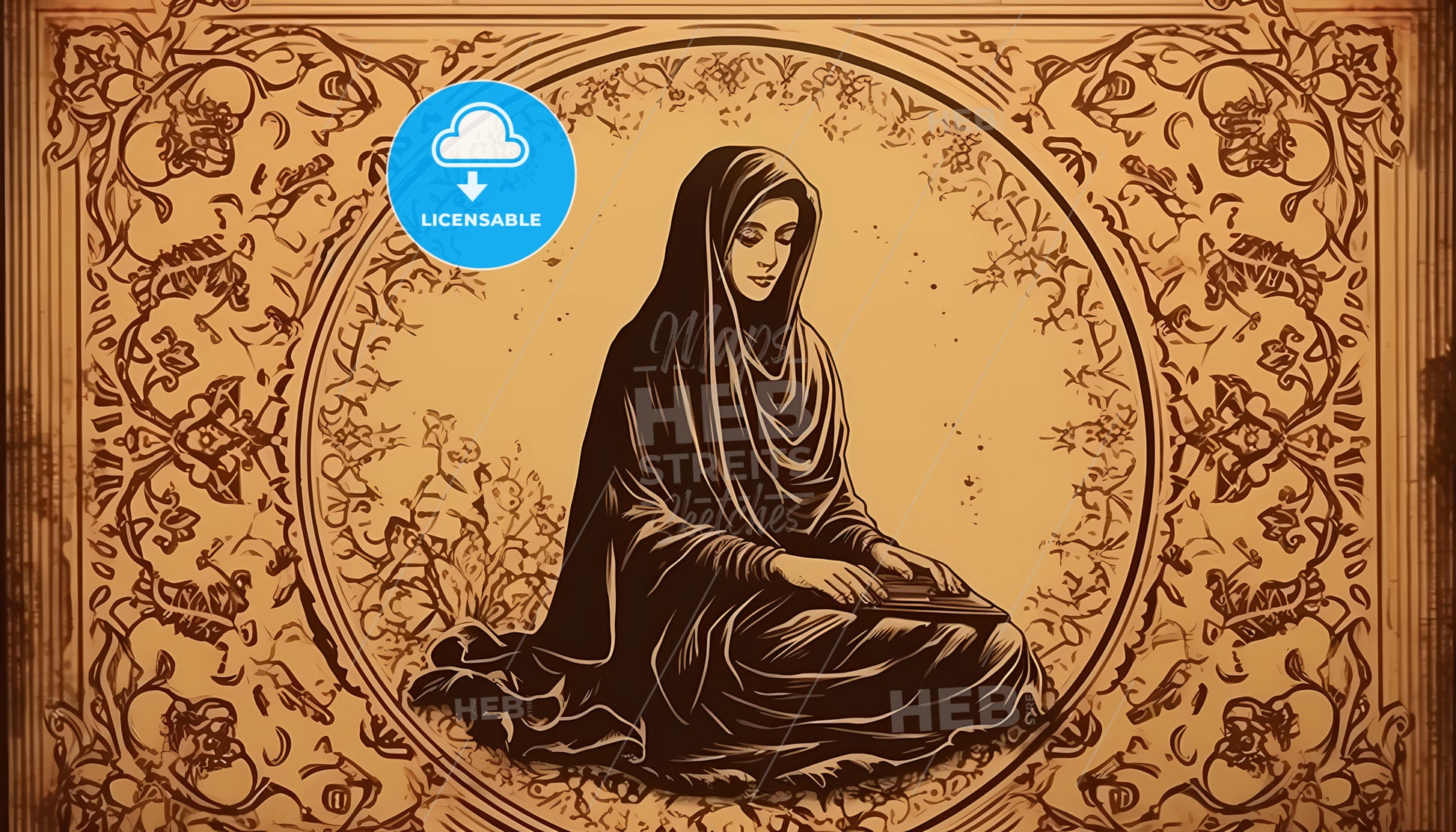 Arabian Woman In Hijab With Copybook, a drawing of a woman in a robe.