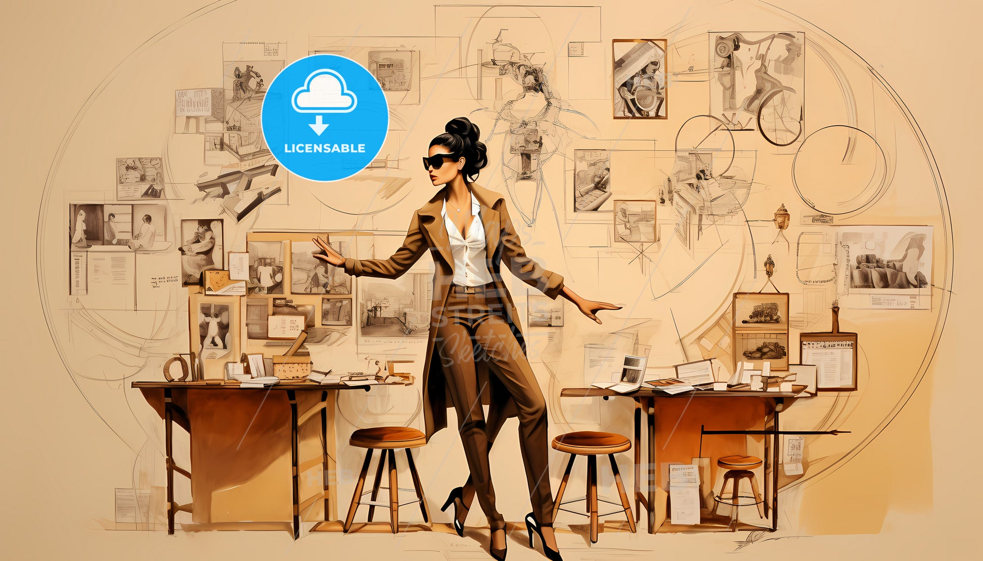 Project Manager At Vision Board, a woman in a suit standing in front of a desk.