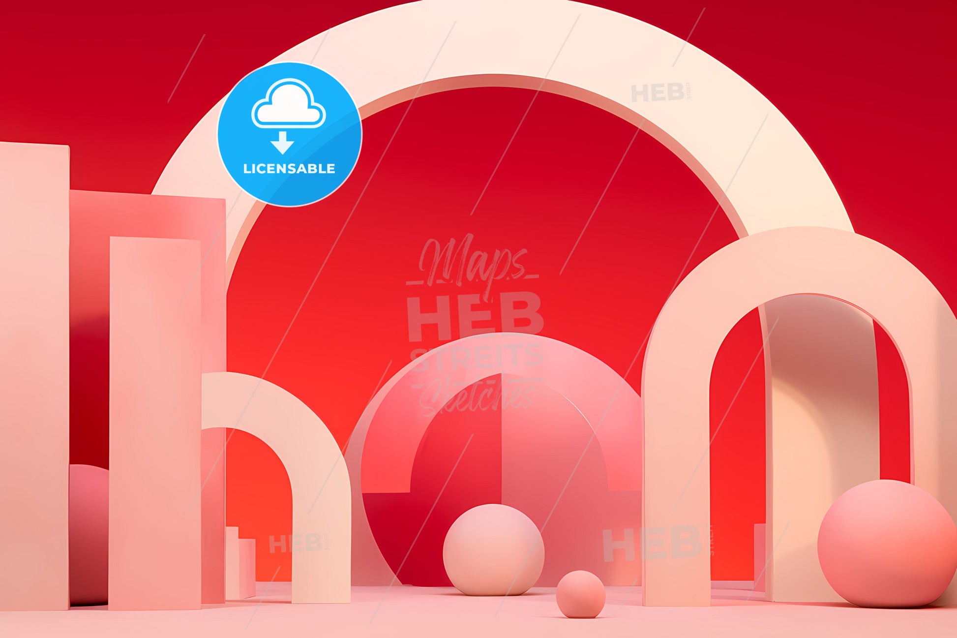 Pink Cream And Red Circular Objects, A White And Pink Geometric Shapes. Stock Illustration generated with help of high resolution generative AI. License available for private and commercial use.