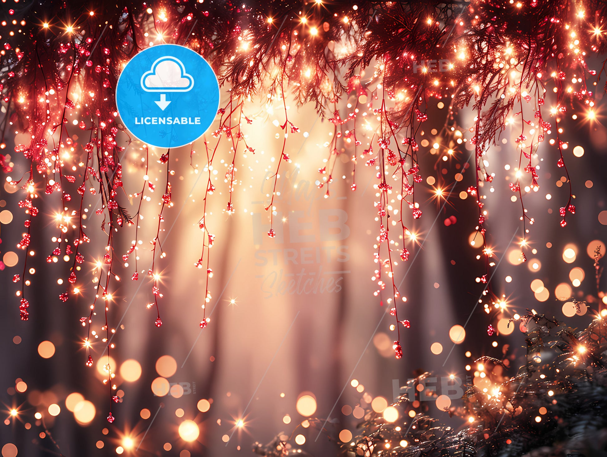 Empty Light Pink Wall, Lights From Branches In A Forest. Stock Illustration generated with help of high resolution generative AI. License available for private and commercial use.