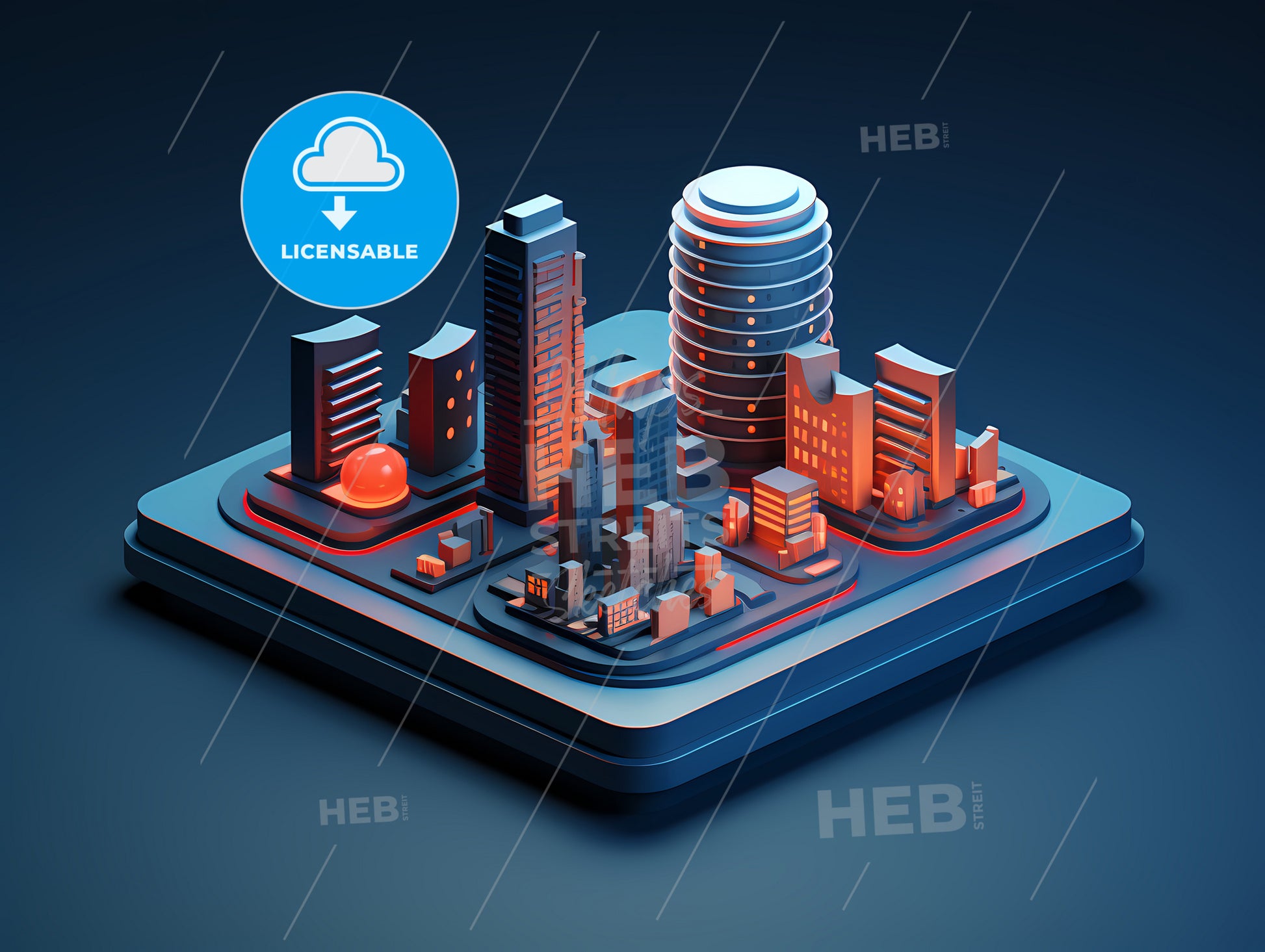 Business Models Icon In 3D Style, A Model Of A City. Stock Illustration generated with help of high resolution generative AI. License available for private and commercial use.