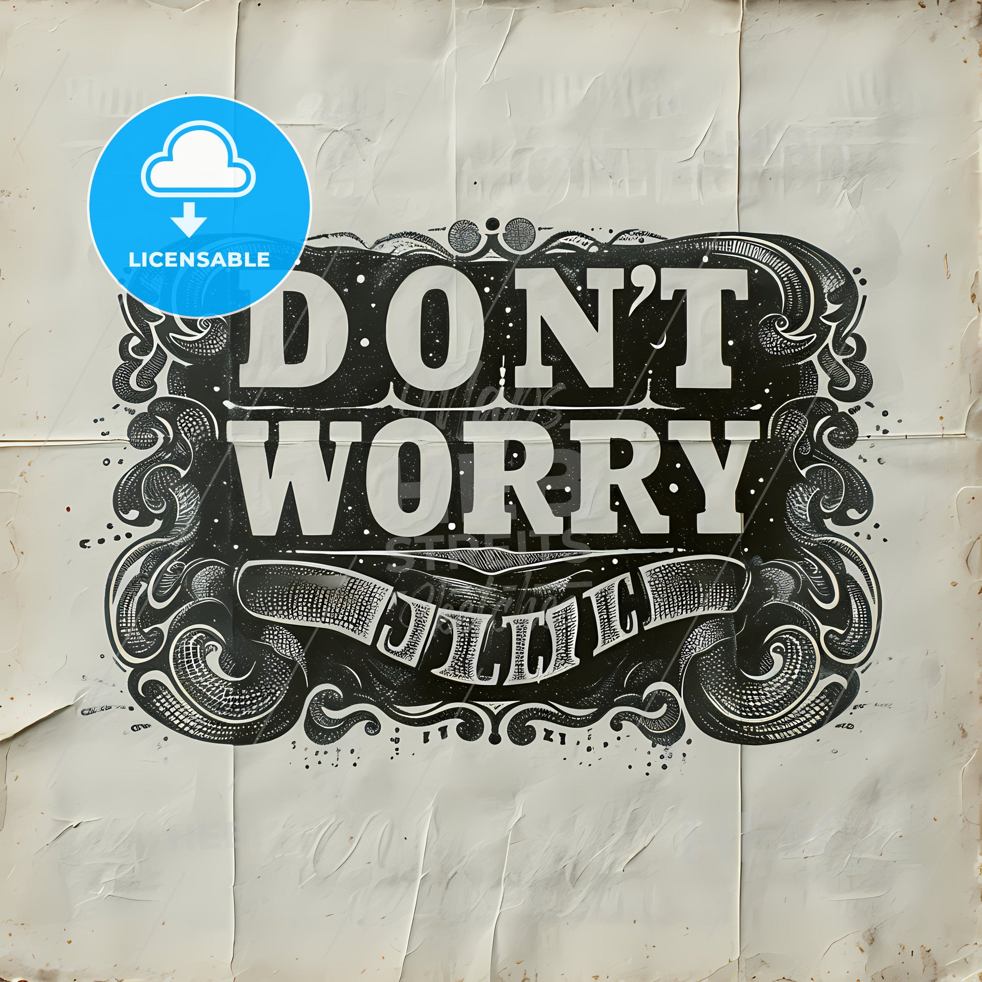 Don't Worry, A White Sign With Black Text. Stock Illustration generated with help of high resolution generative AI. License available for private and commercial use.