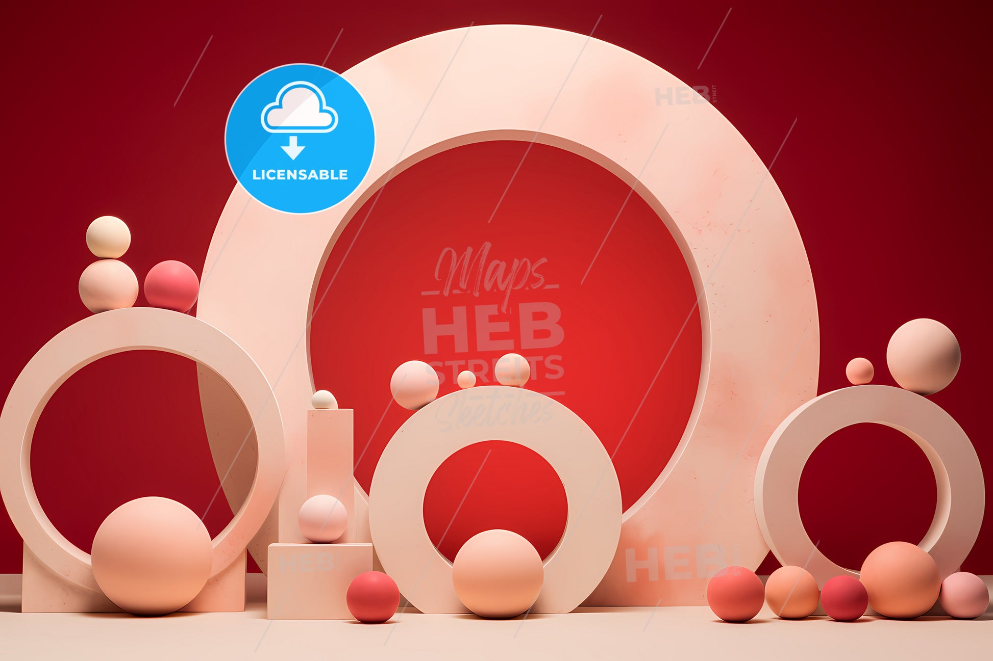 Pink Cream And Red Circular Objects, A Group Of White And Pink Objects. Stock Illustration generated with help of high resolution generative AI. License available for private and commercial use.