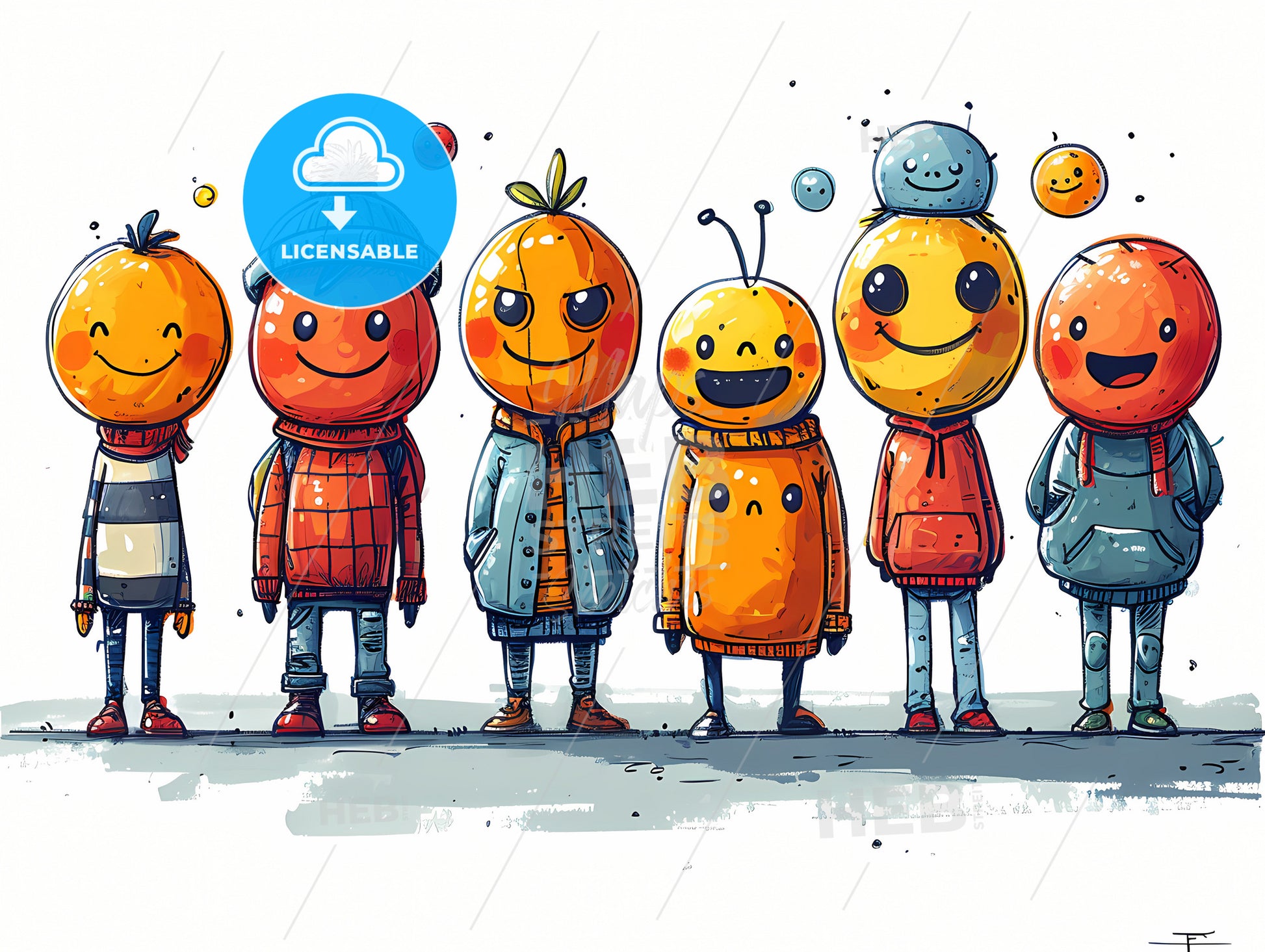 Alot Of Grafity On A White Background, A Group Of Cartoon Characters With Faces. Stock Illustration generated with help of high resolution generative AI. License available for private and commercial use.