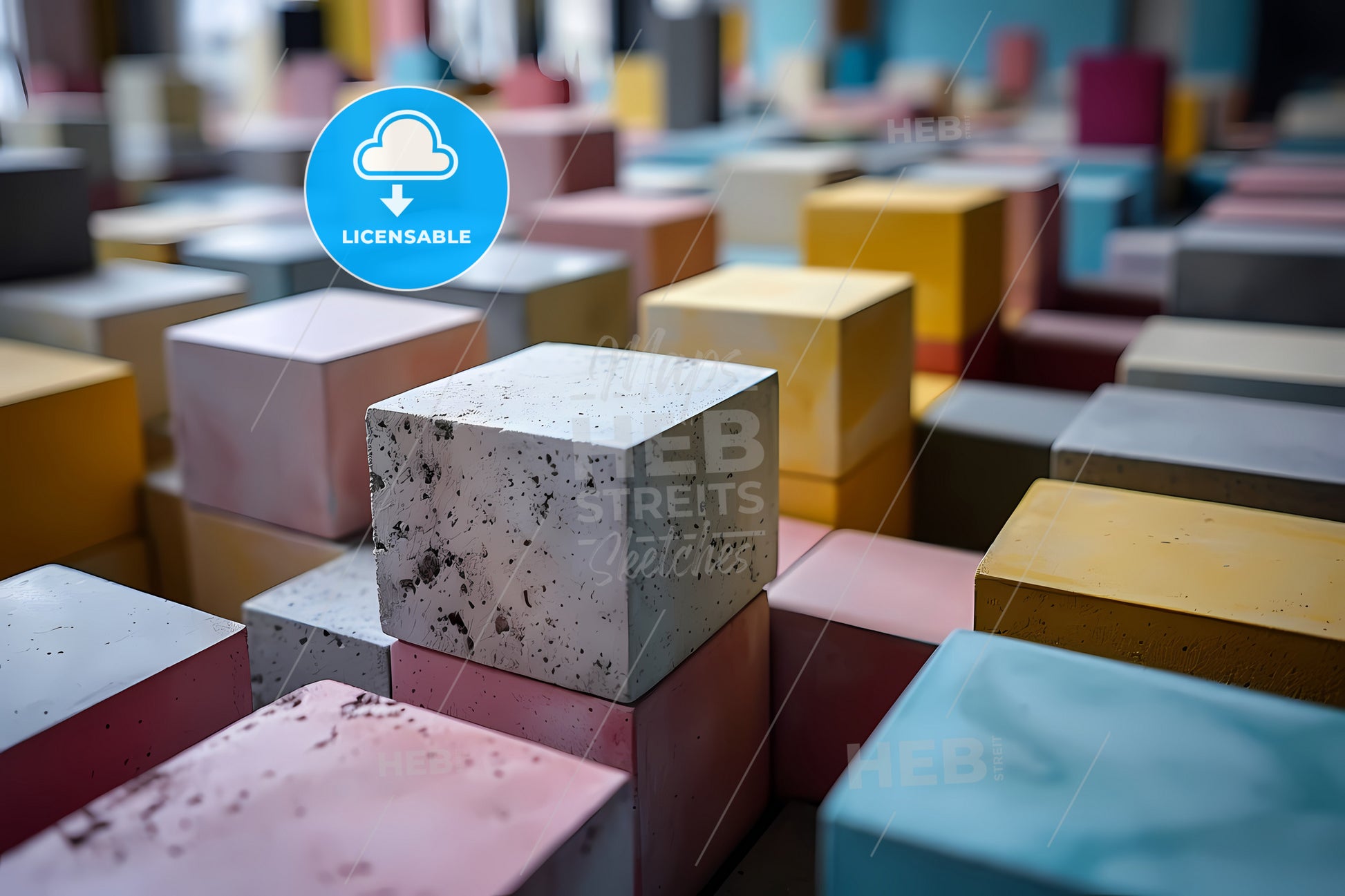 An Illustration Of A Geometric Grid, A Group Of Colorful Cubes. Stock Illustration generated with help of high resolution generative AI. License available for private and commercial use.