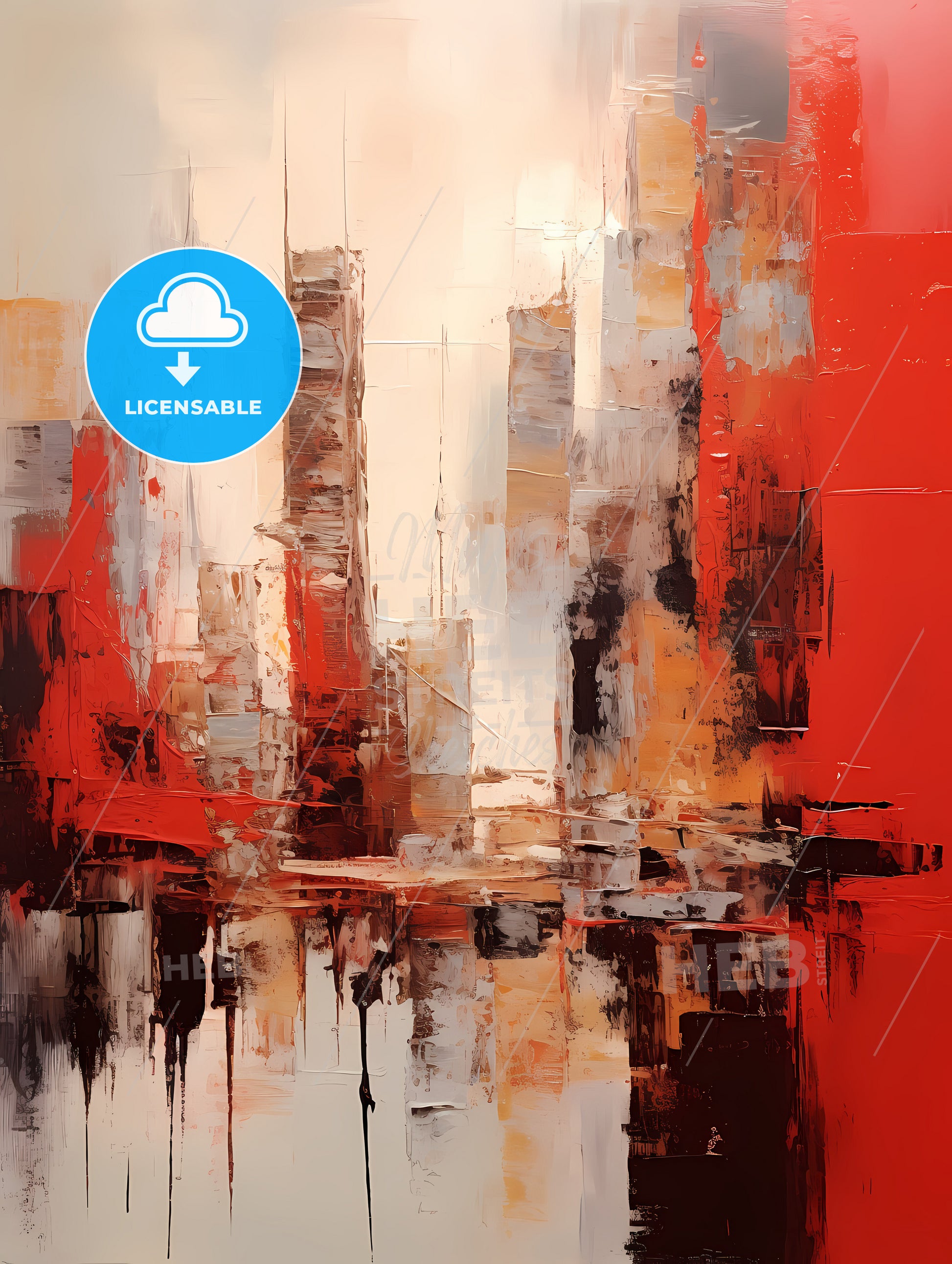 A Painting Of Cities In Reds And Browns, A Painting Of A City. Stock Illustration generated with help of high resolution generative AI. License available for private and commercial use.