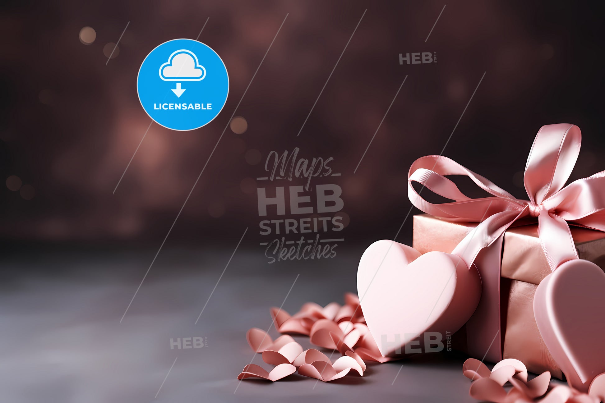 Happy Valentines Day Background, A Pink Heart Shaped Box With Ribbon And Petals. Stock Illustration generated with help of high resolution generative AI. License available for private and commercial use.