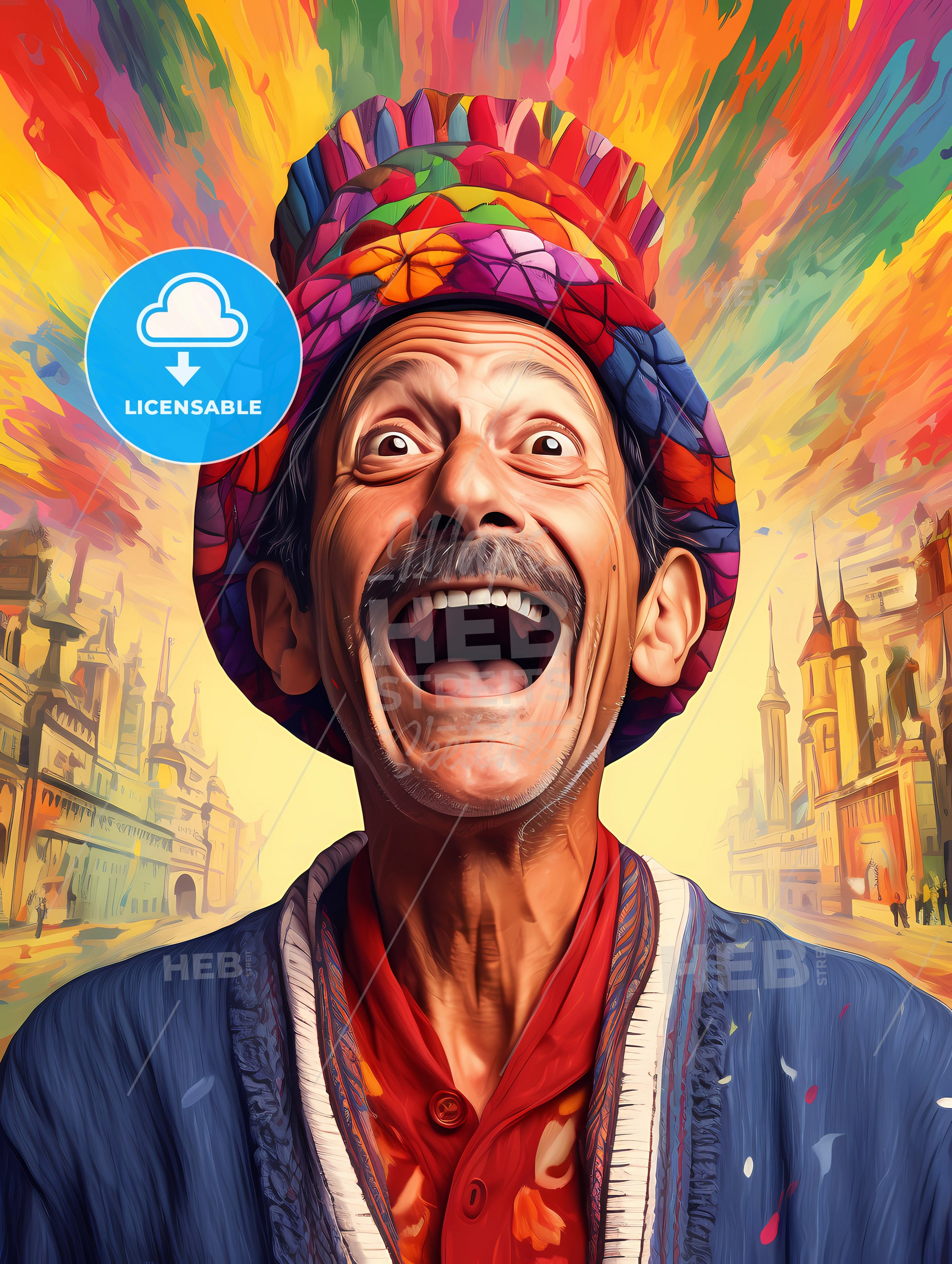 Happy Suprised Man Wearing Santa Hat, A Man Wearing A Colorful Hat. Stock Illustration generated with help of high resolution generative AI. License available for private and commercial use.