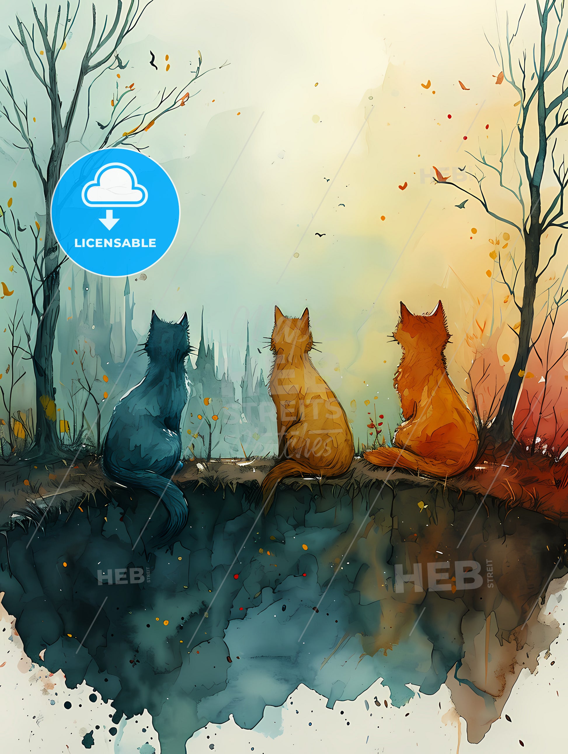 Cats Eclectic Squares On A White Background, A Group Of Cats Sitting On A Ledge. Stock Illustration generated with help of high resolution generative AI. License available for private and commercial use.