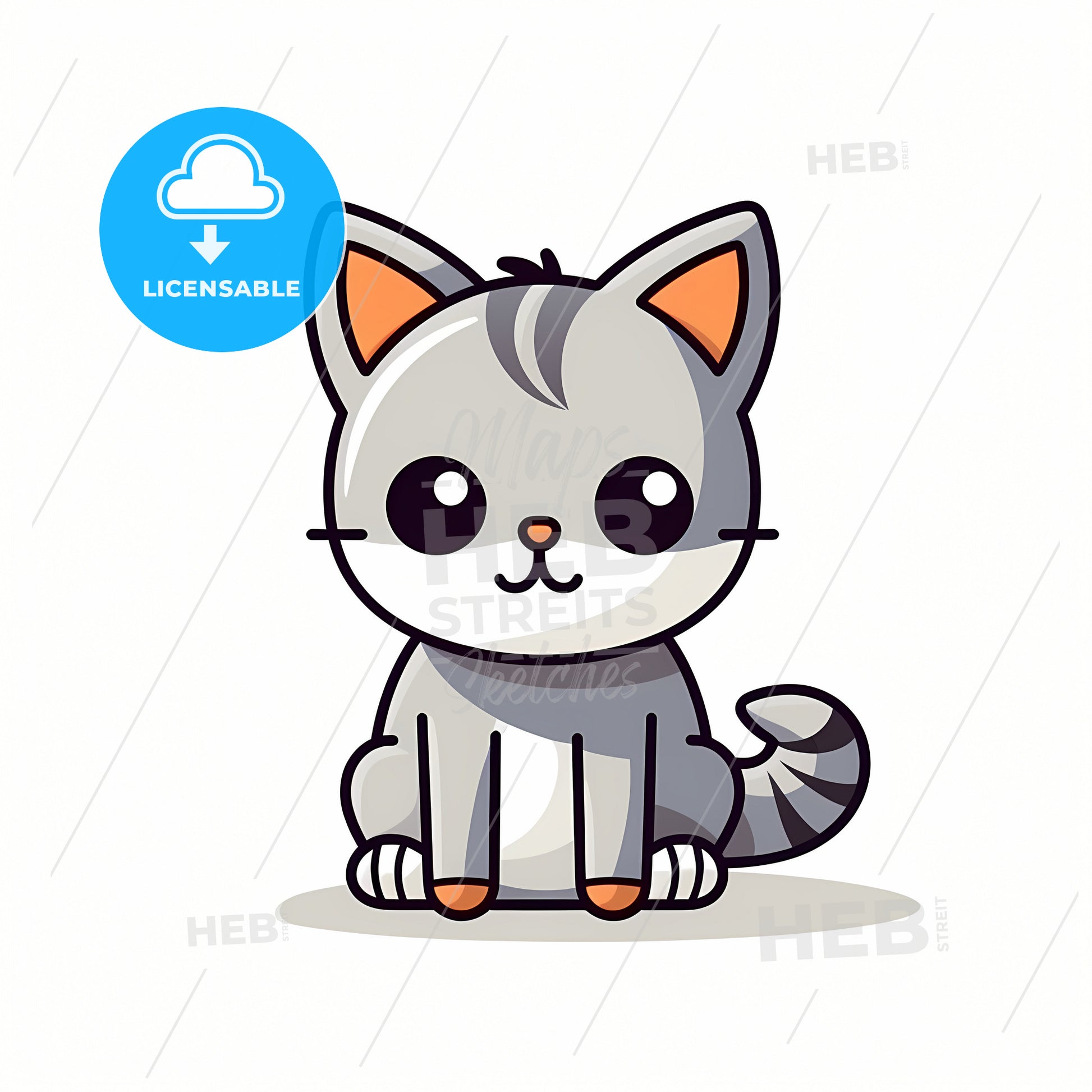 A Cat, A Cartoon Of A Cat. Stock Illustration generated with help of high resolution generative AI. License available for private and commercial use.