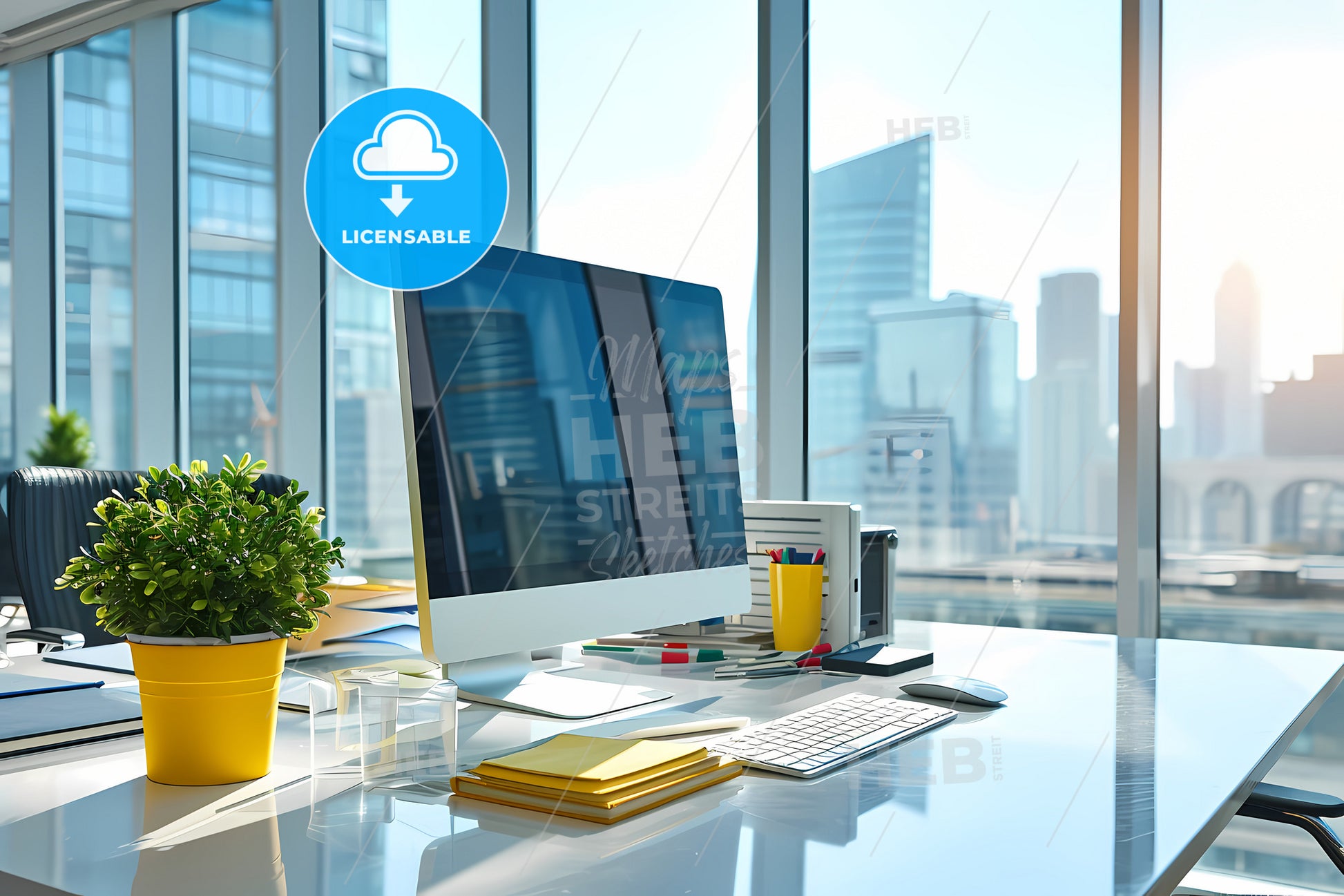 Creative Design Process With A Computer, A Computer On A Desk. Stock Illustration generated with help of high resolution generative AI. License available for private and commercial use.