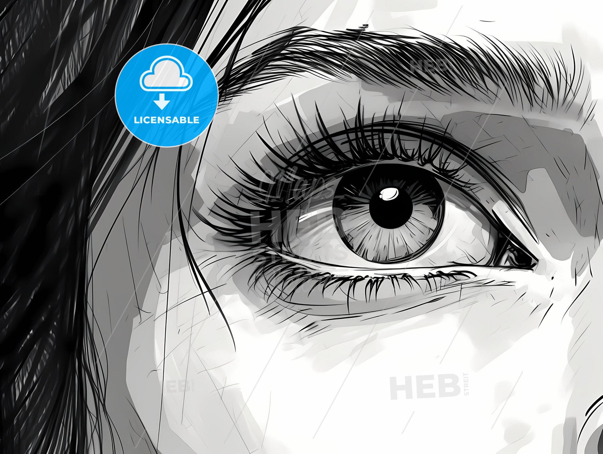 Close Up On Eyes Of A Face, A Close Up Of A Woman's Eye. Stock Illustration generated with help of high resolution generative AI. License available for private and commercial use.