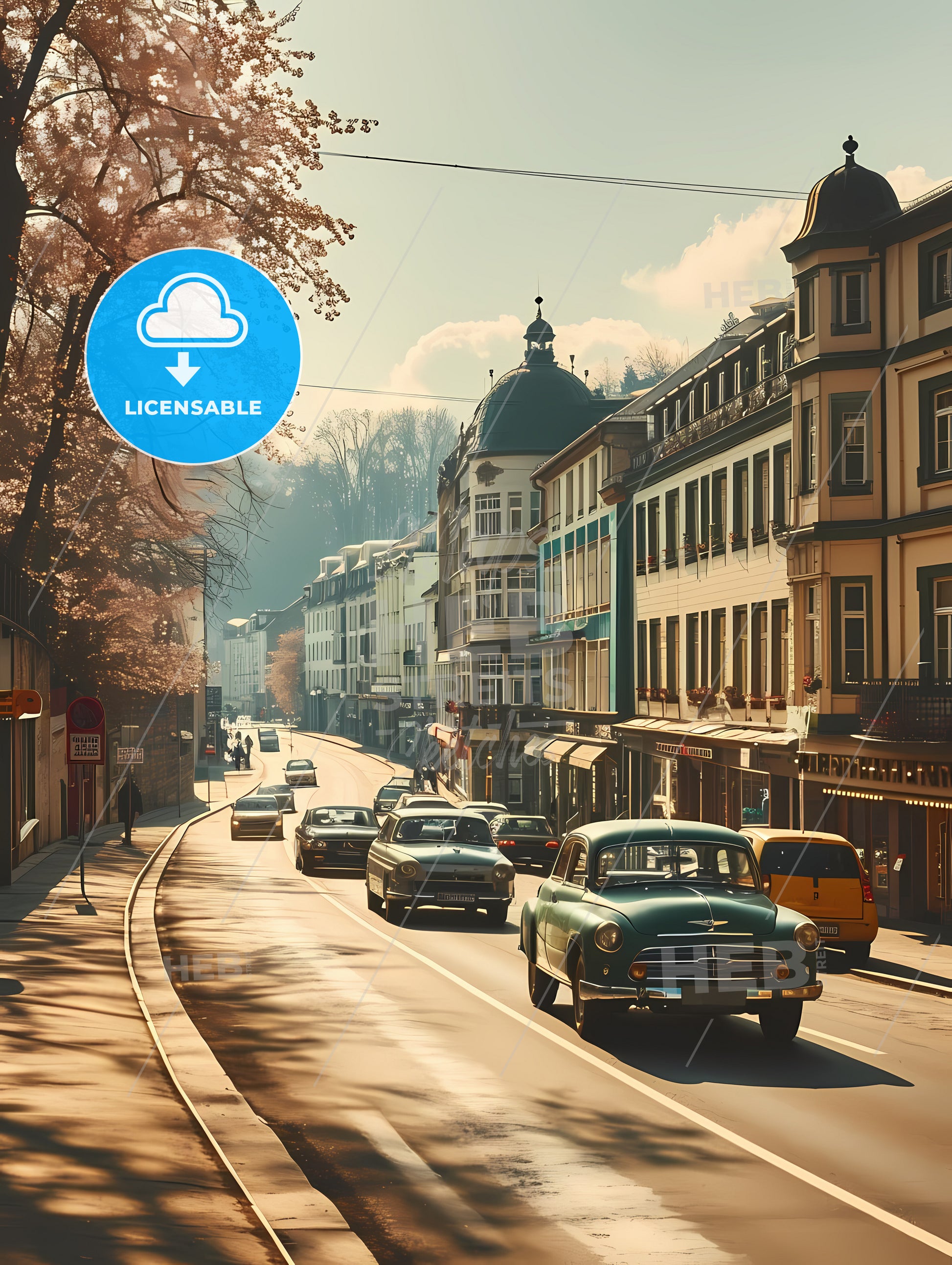 Berlin Germany Skyline, A Street With Cars And Buildings. Stock Illustration generated with help of high resolution generative AI. License available for private and commercial use.