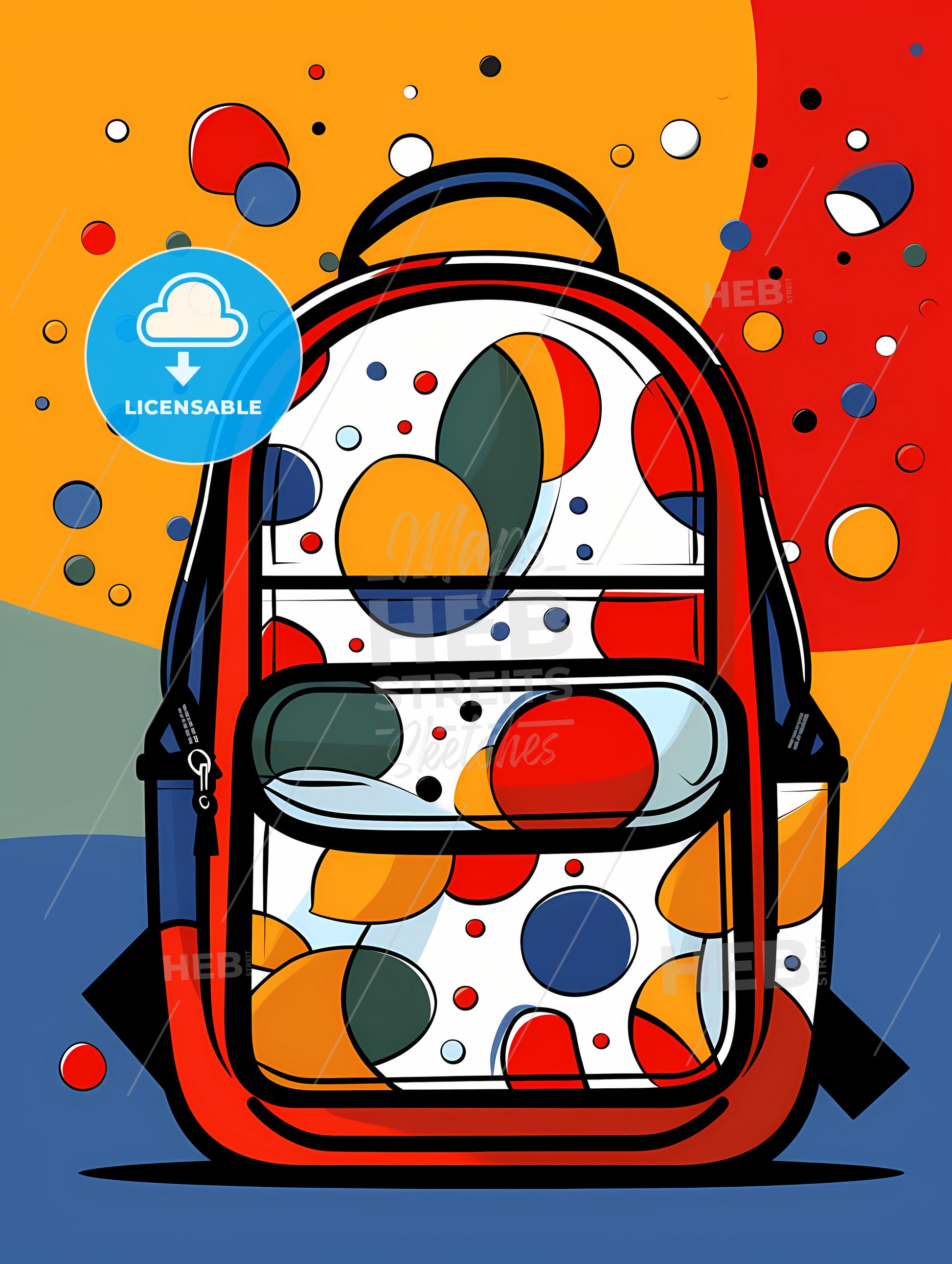 Minimalist Back To School Art, A Backpack With Colorful Circles On It. Stock Illustration generated with help of high resolution generative AI. License available for private and commercial use.