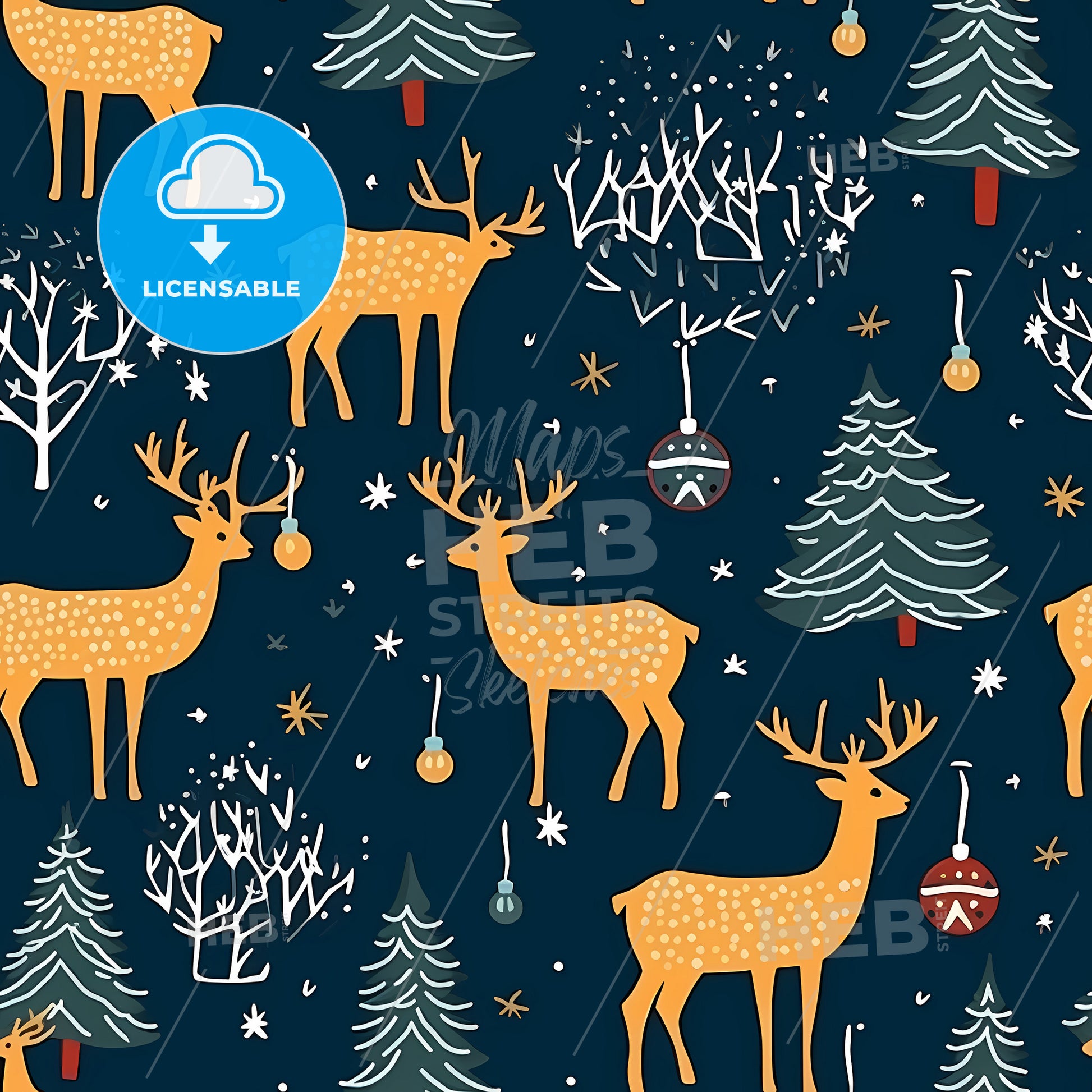Hand Drawn Christmas Pattern, A Pattern Of Deer And Trees. Stock Illustration generated with help of high resolution generative AI. License available for private and commercial use.