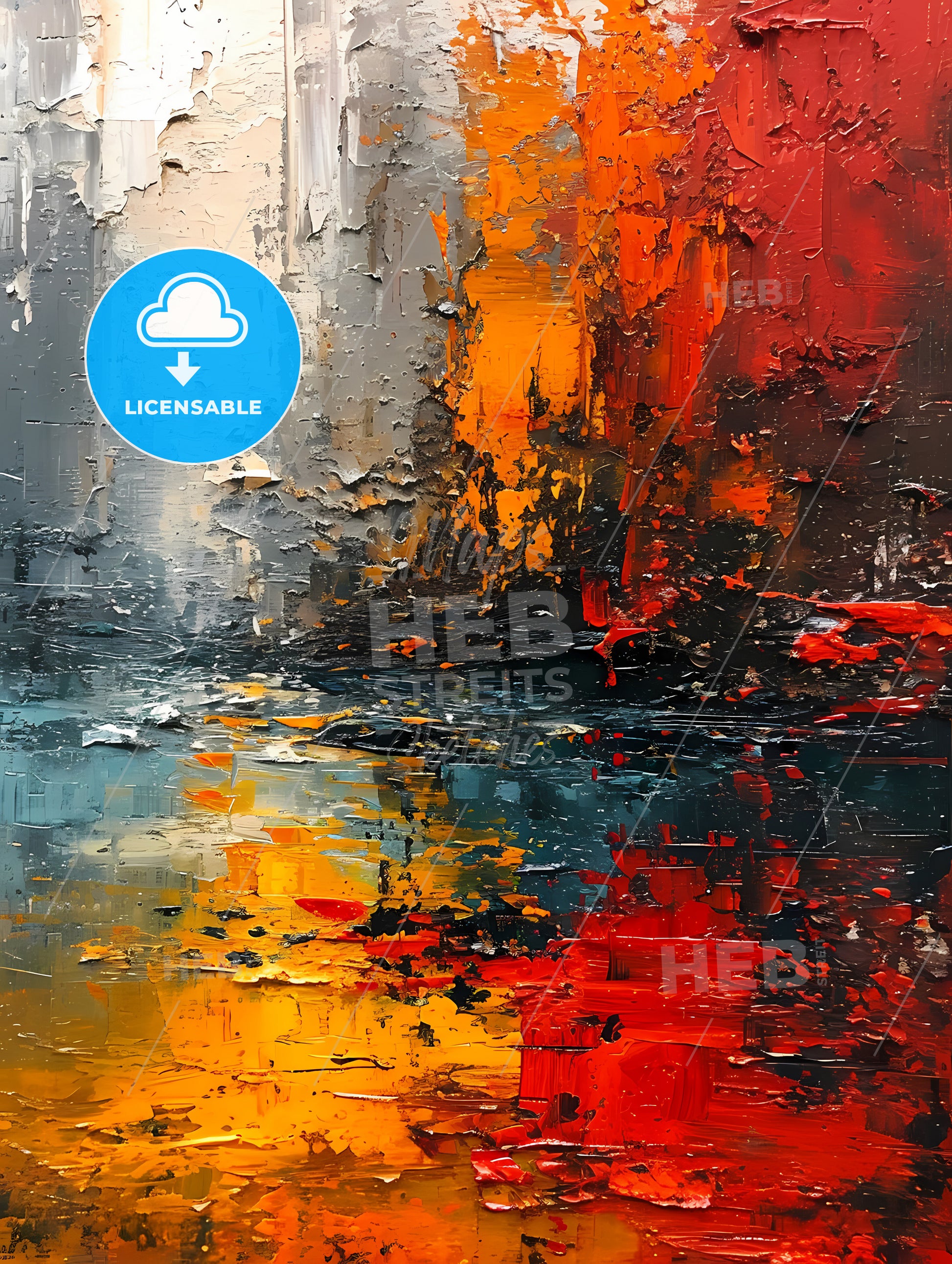 Neutral Beige Mid Century Modern Art Painting, A Painting Of Different Colors. Stock Illustration generated with help of high resolution generative AI. License available for private and commercial use.