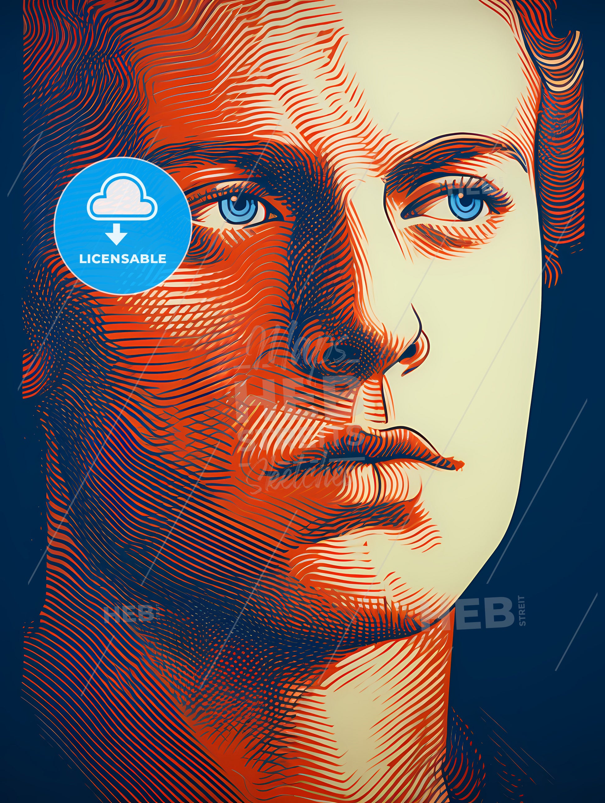 Line Drawing Of Handsome Masculine Face, A Close Up Of A Man's Face. Stock Illustration generated with help of high resolution generative AI. License available for private and commercial use.