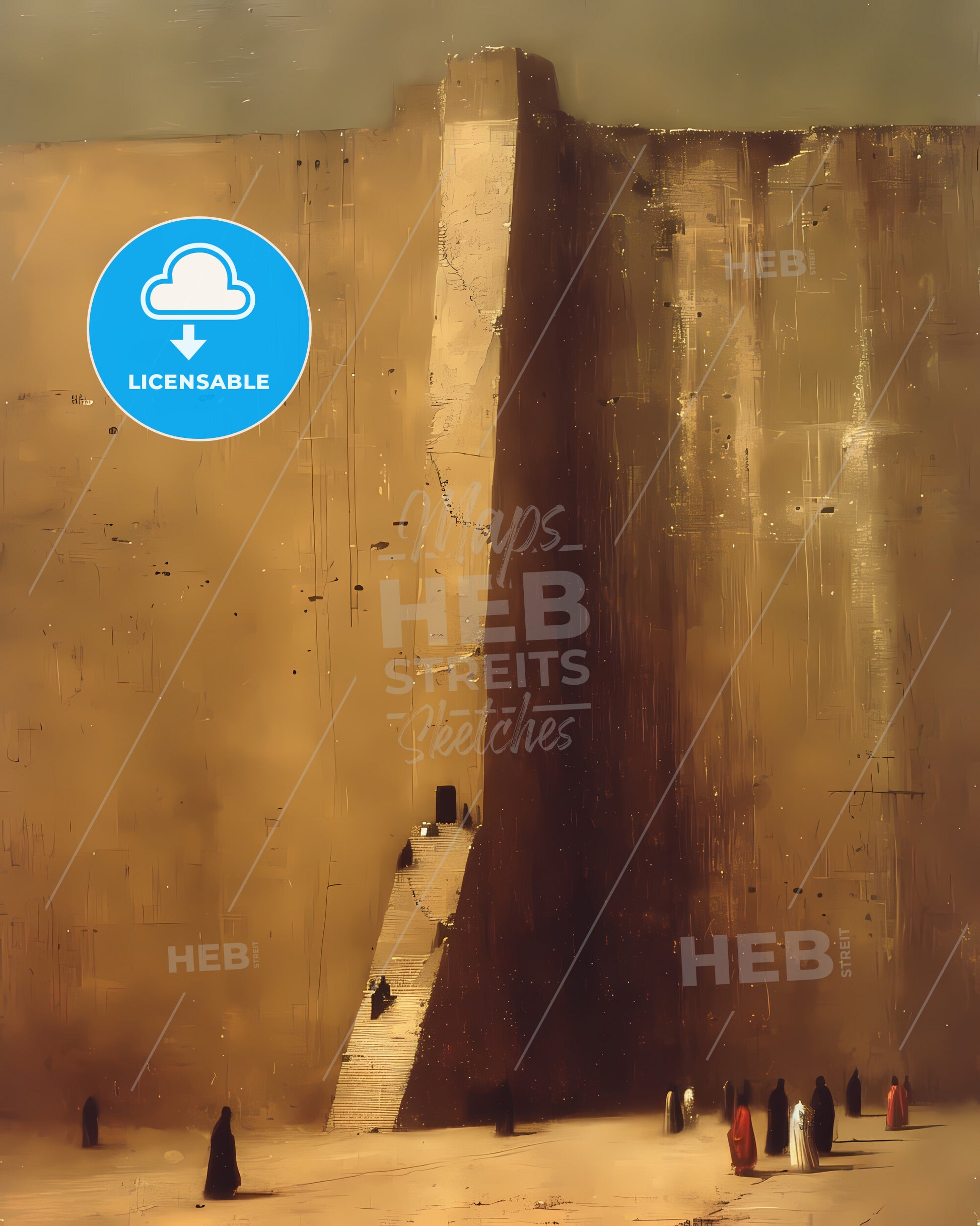 In Ancient Babylon, There A Very Wide Temple Structure In The Middle Of The Walled City - A Group Of People Walking Up A Steep Wall