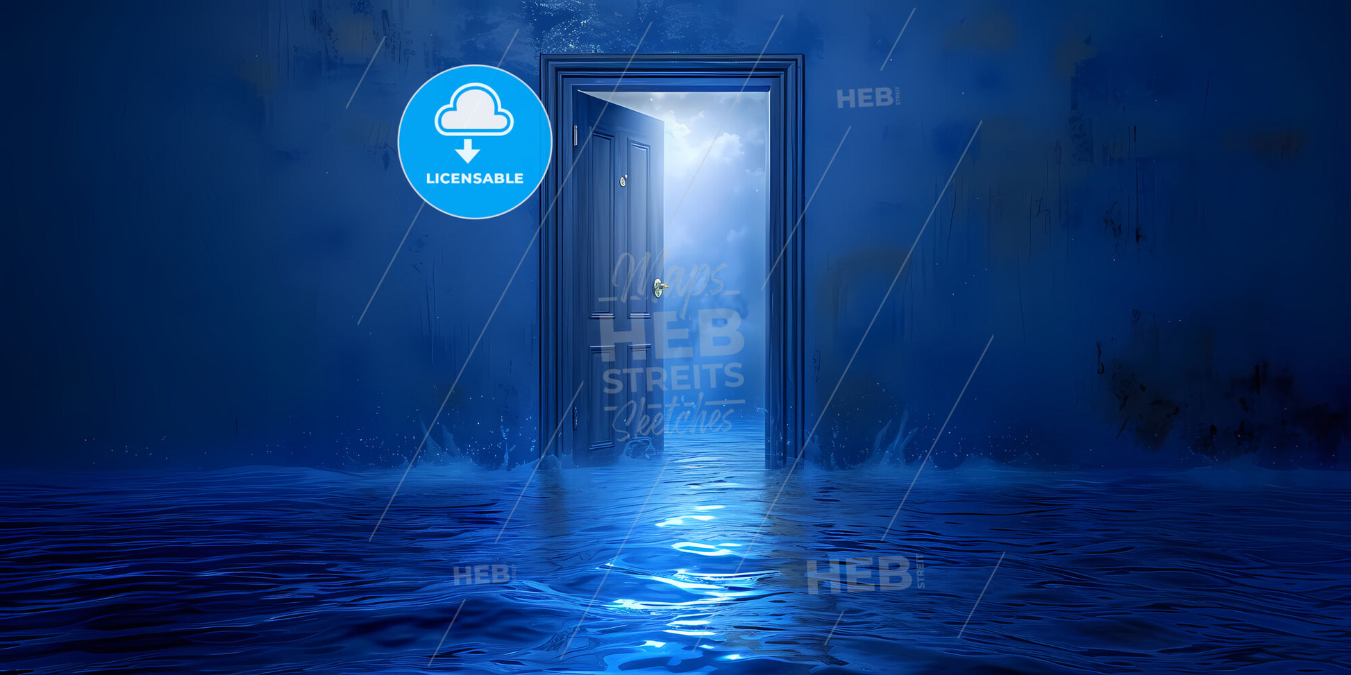 Abstract Blue Geometric Background - A Door In A Flooded Room