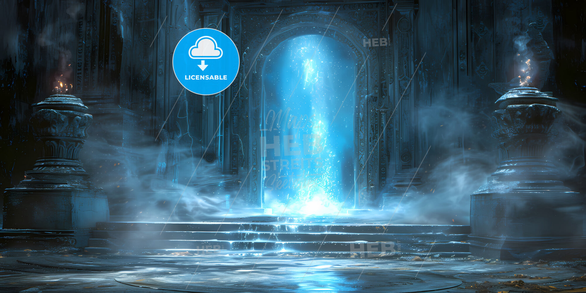 Abstract Blue Geometric Background - A Blue Light Coming Out Of A Stone Doorway