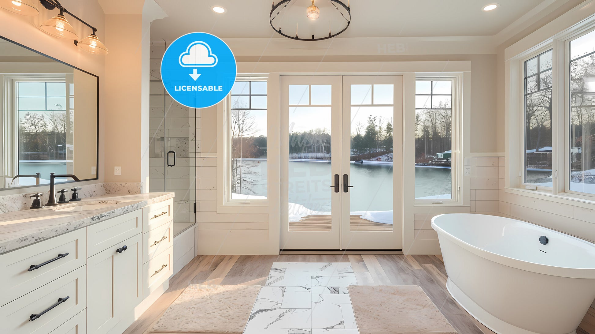 A Spacious Newly Designed Bathroom - A Bathroom With A Tub And A Tub And A Bathtub