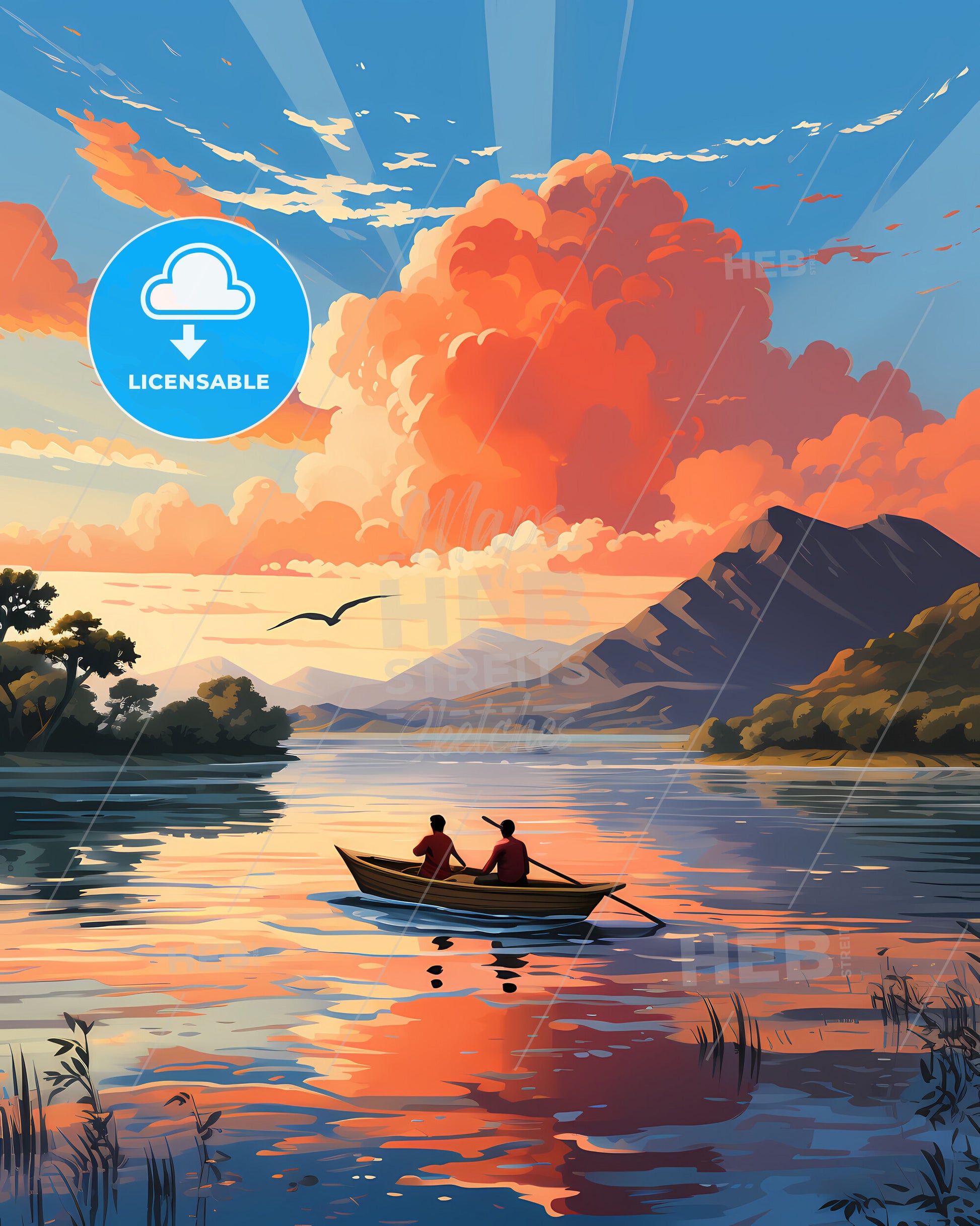 Komodo Islands, Indonesia - A Couple Of People In A Boat On A Lake