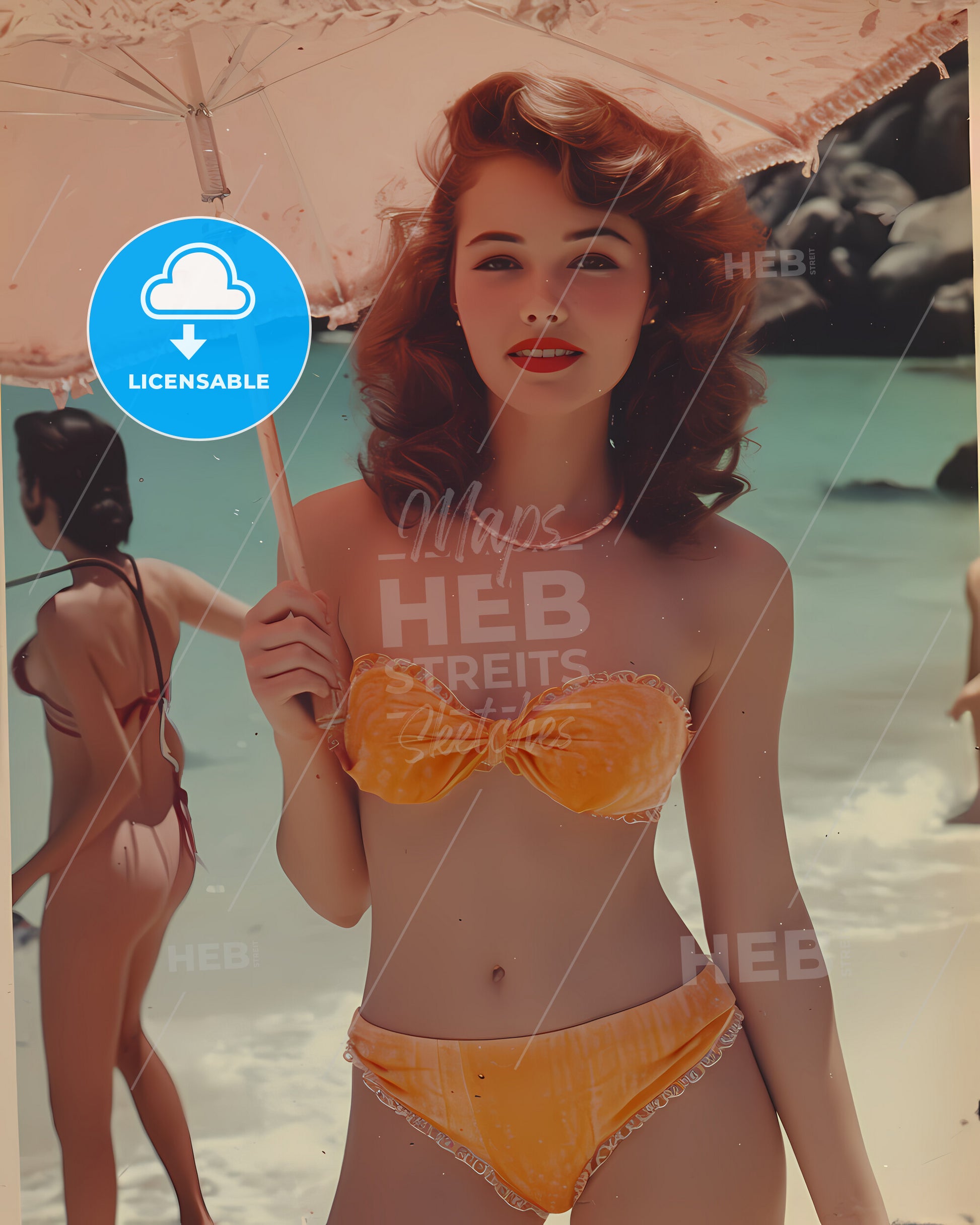 Illustration Of International Labor Day - A Woman In A Garment Holding An Umbrella