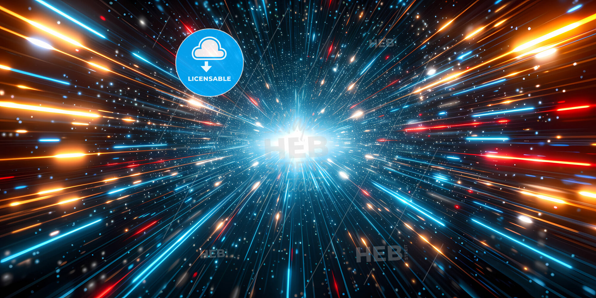 Abstract cosmic background, ultraviolet neon rays, glowing lines, cyber network, speed of light, space and time strings, bright twist.